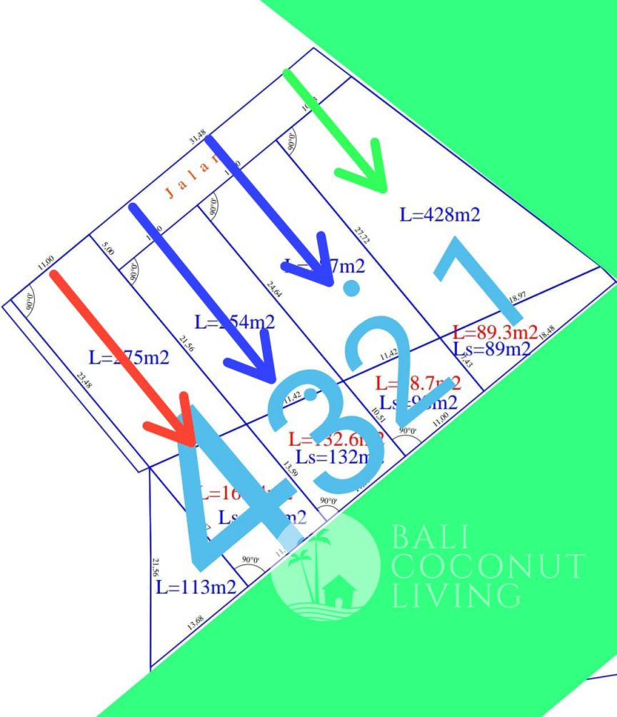 *Land no 3 (the blue arrow): 3,85 are (385 sqm)