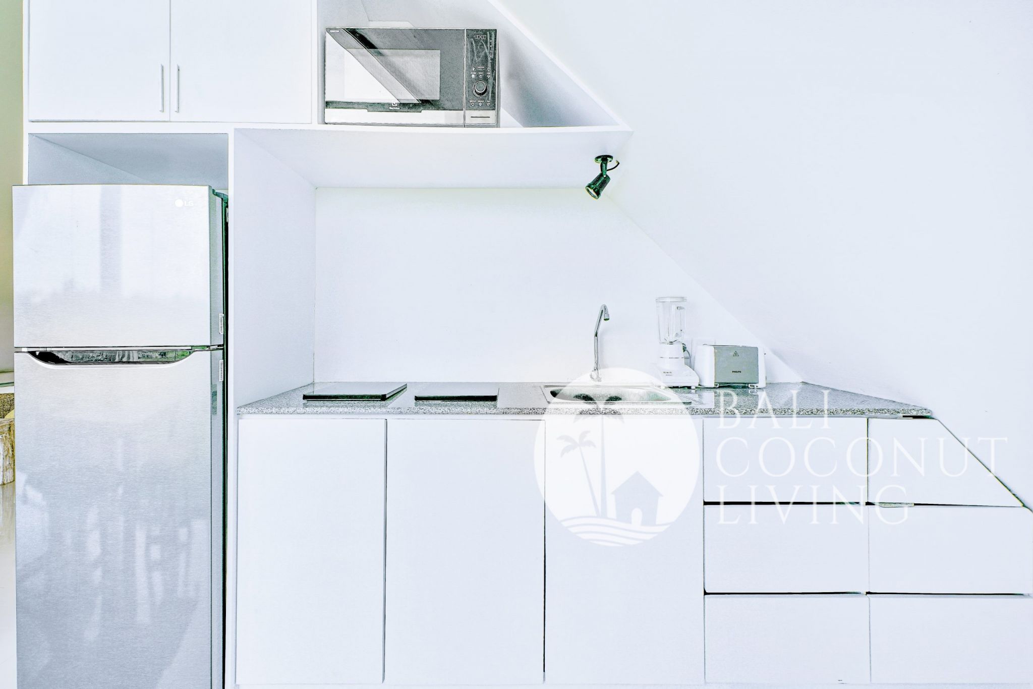It impresses with its modern equipment in both the living room and the bedroom. The choice of white paint on the walls gives an elegant and luxury impression. The bright kitchen and good quality of the selected furnishing add to the apartments' charm. An incredible variety of beautiful cafes and restaurants, trendy bars and beach clubs, supermarkets and the beautiful beaches in Berawa along to central Canggu, within minutes drive from your door. This apartment is perfect for your temporary home in Bali. Snow White Apartment is available for monthly rental.