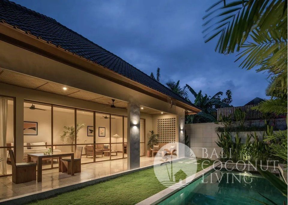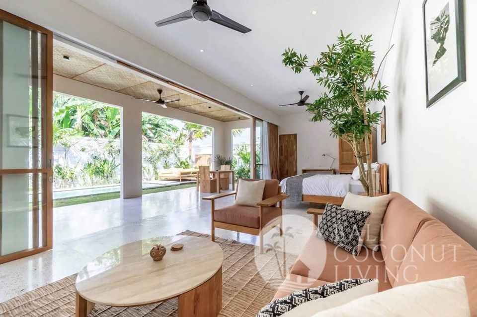 This elegant modern villa offers the perfect balance between tropical vibes and contemporary comfort. Designed with a closed living area, it ensures privacy and comfort while keeping the space bright and airy through wide glass doors overlooking the pool. Featuring 3 spacious bedrooms with ensuite bathrooms, a kitchen with warm wooden finishes, and a stylish living room that creates a cozy and