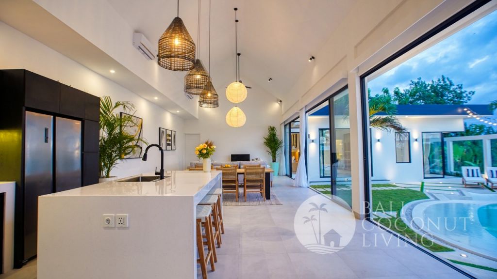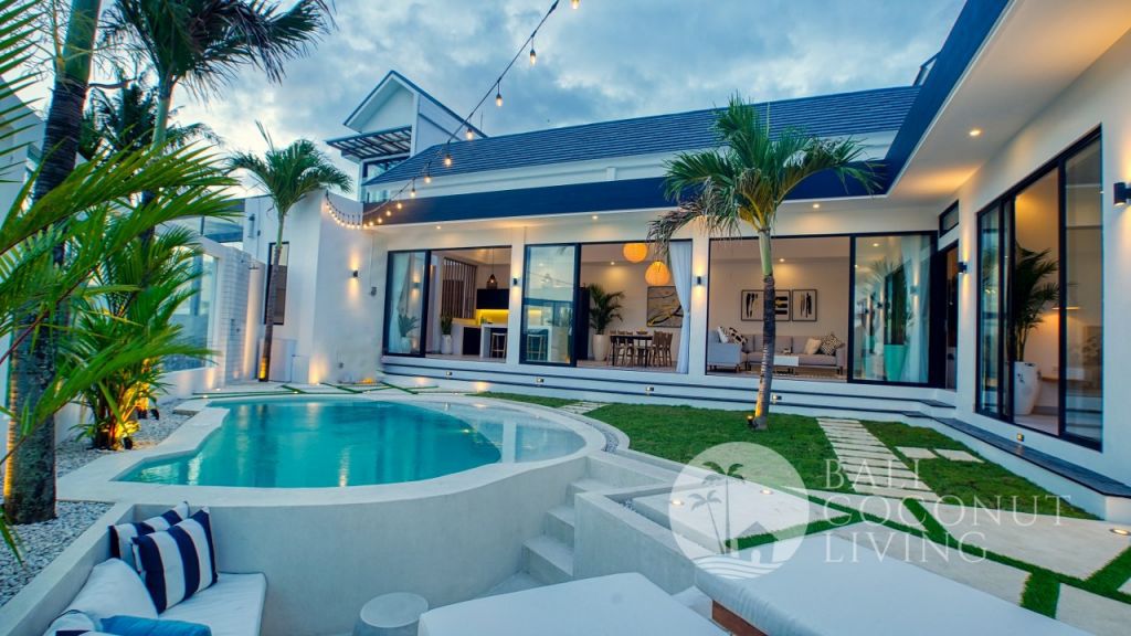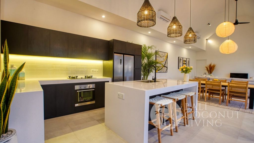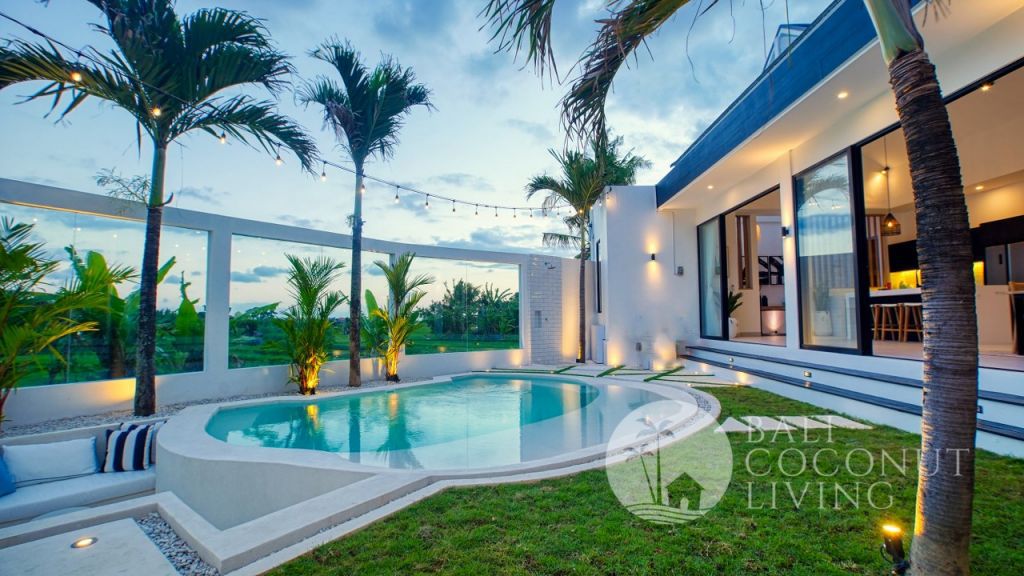 A charming 3-bedroom villa situated in the lovely Canggu area is on the market. Set on a block of 340 sqm of land size with 200 sqm of building. Perched directly above the rice fields and has a massive kitchen and entertaining area. The house comes with en-suite bedrooms, an open-plan kitchen with closed living, storage, laundry facilities, a guest bathroom, a pool and parking for multiple cars and scooters. Every detail of this ultra-modern home has been carefully crafted to create your own sanctuary, surrounded by lush gardens, a sunken day bed and bbq area, and beautiful lighting that gives the villa an enchanted look at night. While large coconut trees complete the feeling you are truly living in an island paradise.