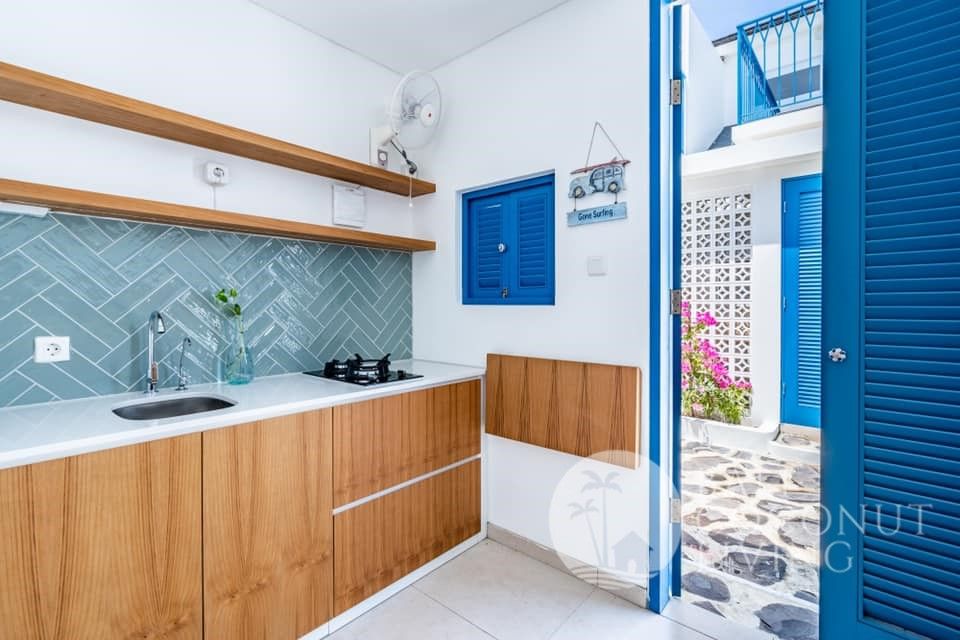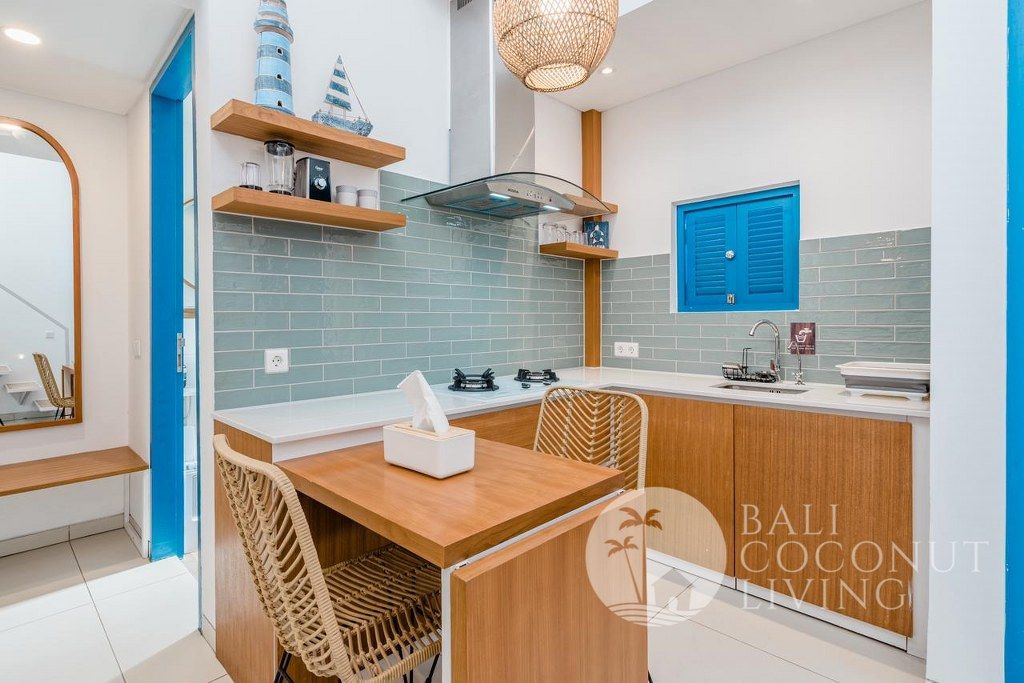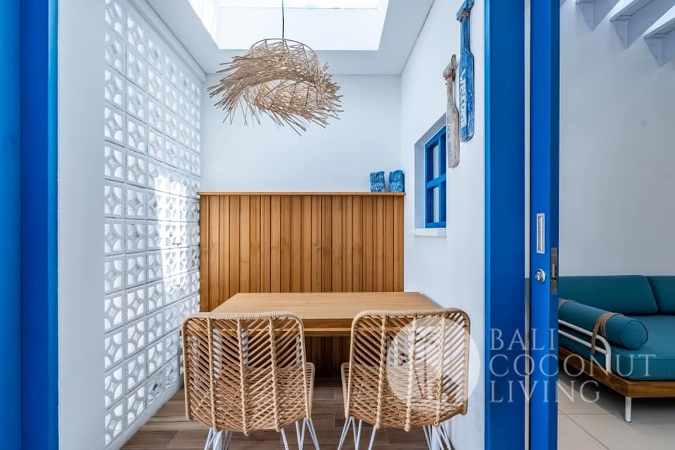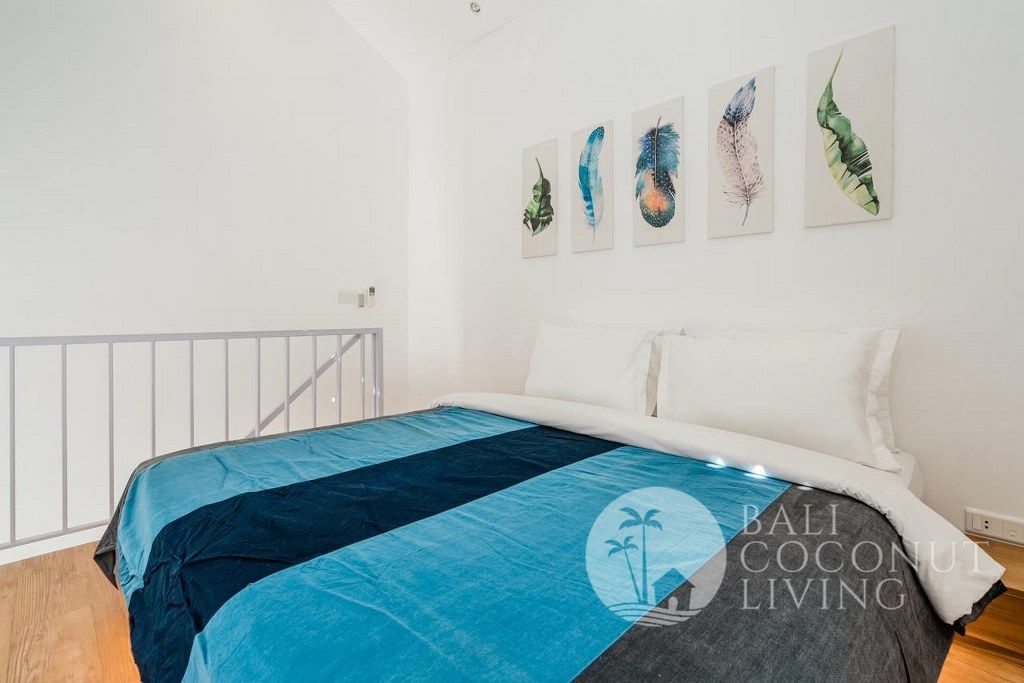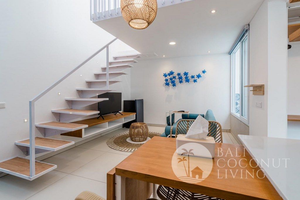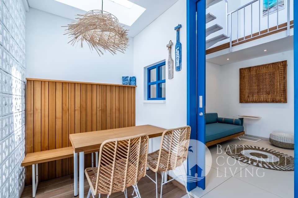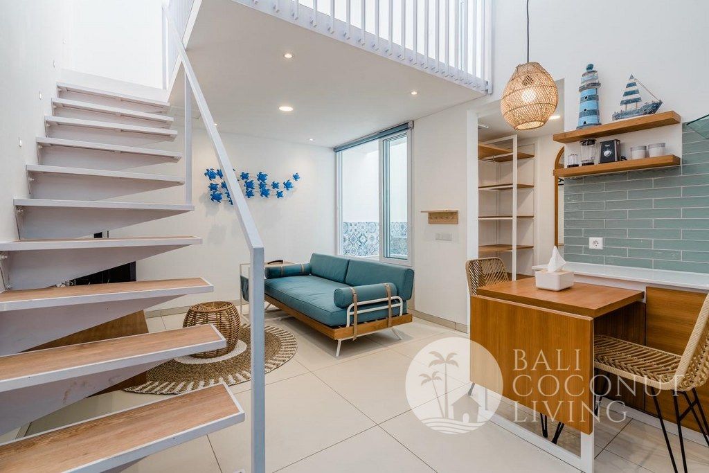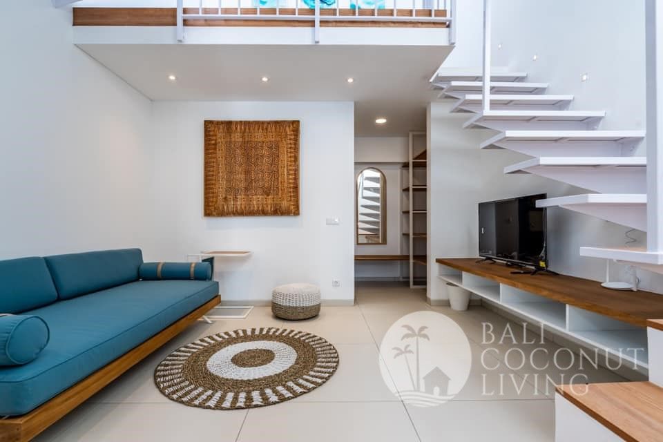 Mediterranean style loft apartments situated in the prime location of Berawa is available for monthly rental. Each unit of this apartment consist of 1 bedroom, 1 bathroom, kitchenette with kitchen utensils, closed living and dining area, wardrobe, rooftop balcony, shared pool and parking space.