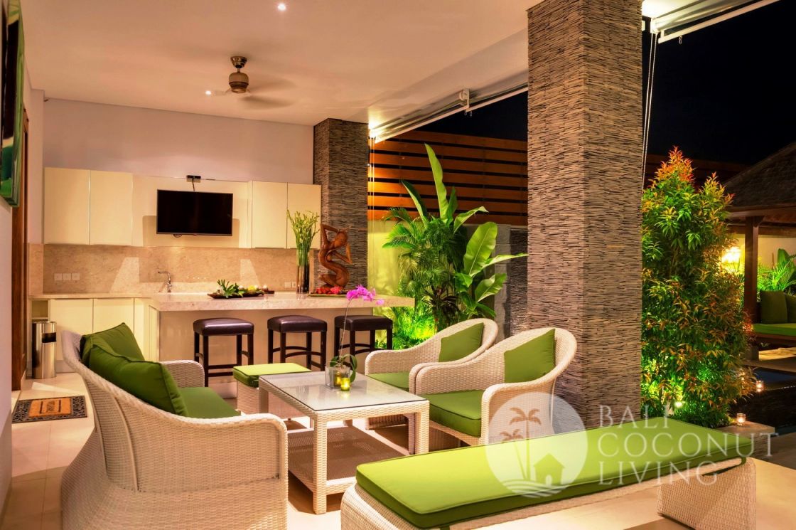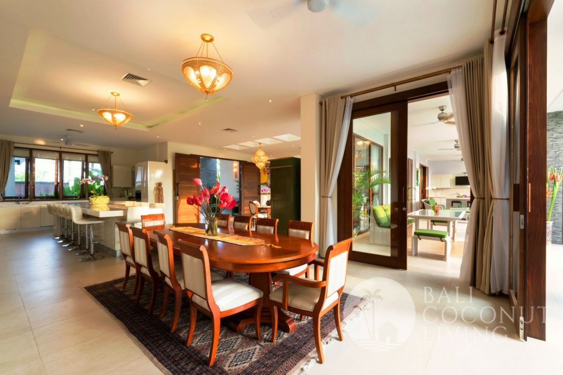 This elegant modern villa offers the perfect balance between tropical vibes and contemporary comfort. Designed with a closed living area, it ensures privacy and comfort while keeping the space bright and airy through wide glass doors overlooking the pool. Featuring 3 spacious bedrooms with ensuite bathrooms, a kitchen with warm wooden finishes, and a stylish living room that creates a cozy and