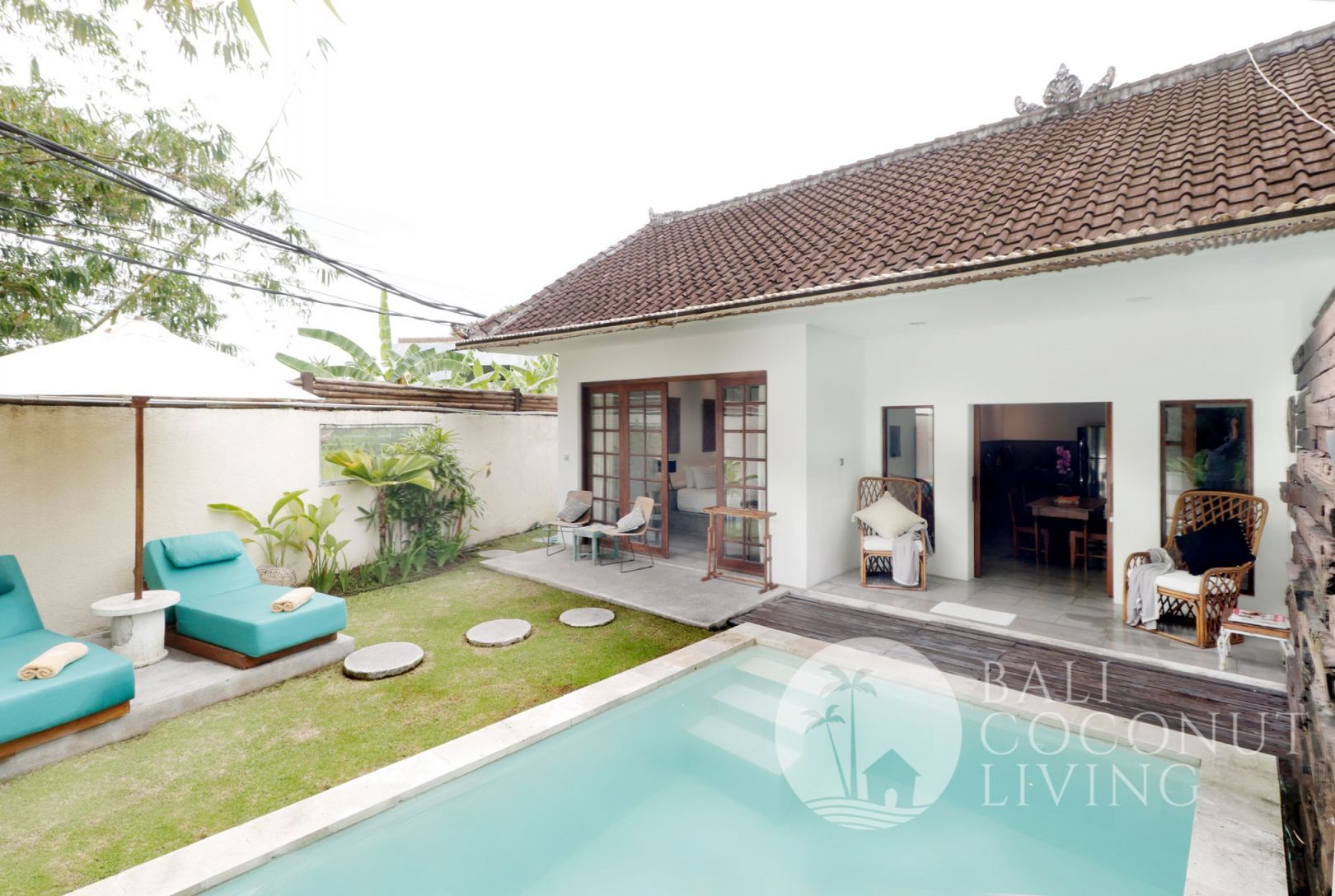 This cozy 2 bedroom villa in Berawa offers a perfect blend of modern design and comfortable living. Set on 100 sqm of land, the property features a clean architectural style with warm wooden accents and large windows that invite plenty of natural light, creating a bright and welcoming atmosphere throughout the home. Inside, you’ll find a cozy enclosed living area that seamlessly connects to t