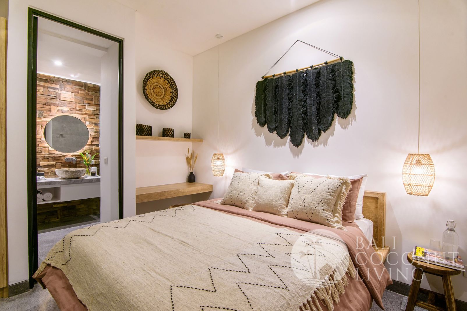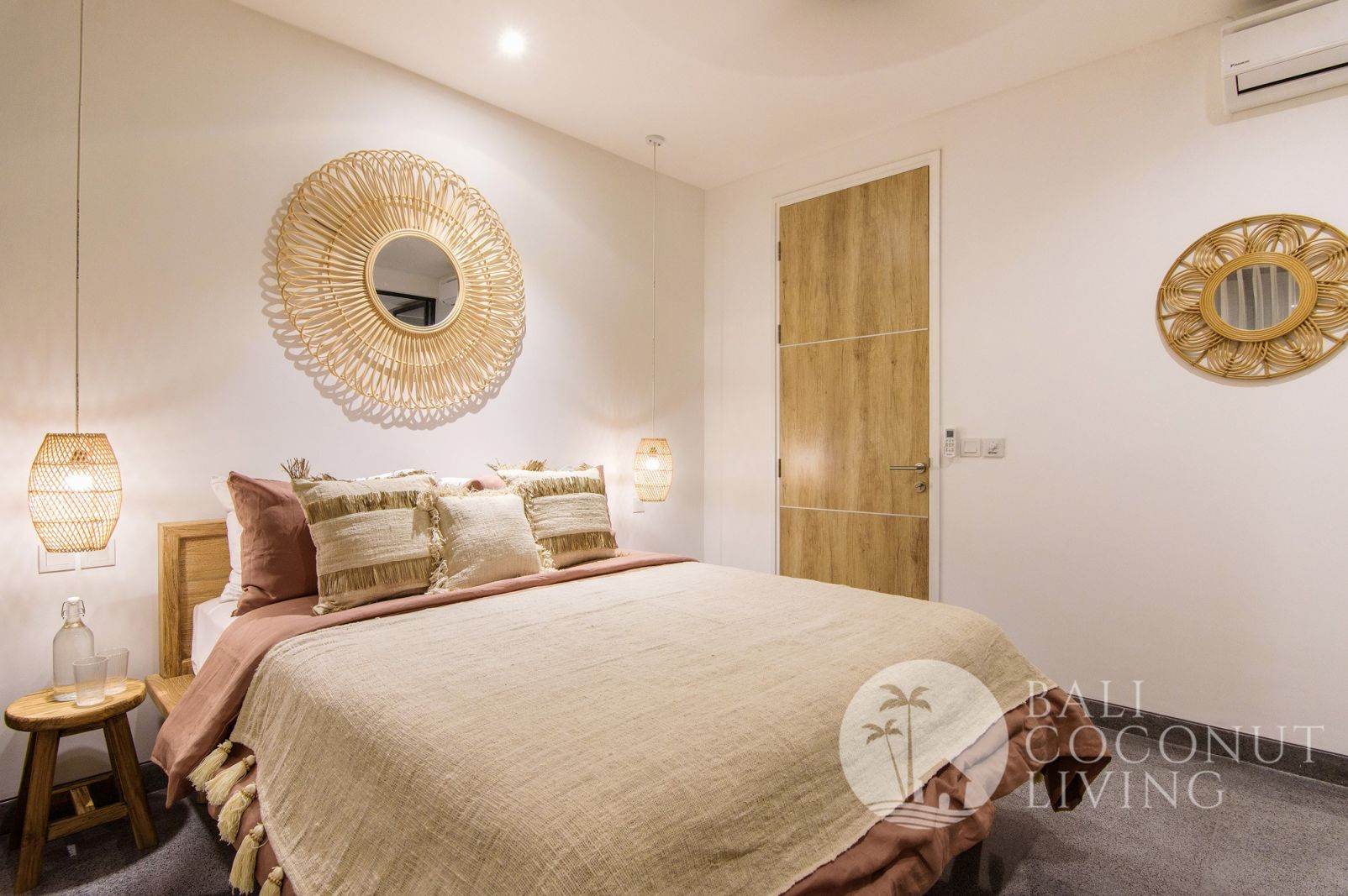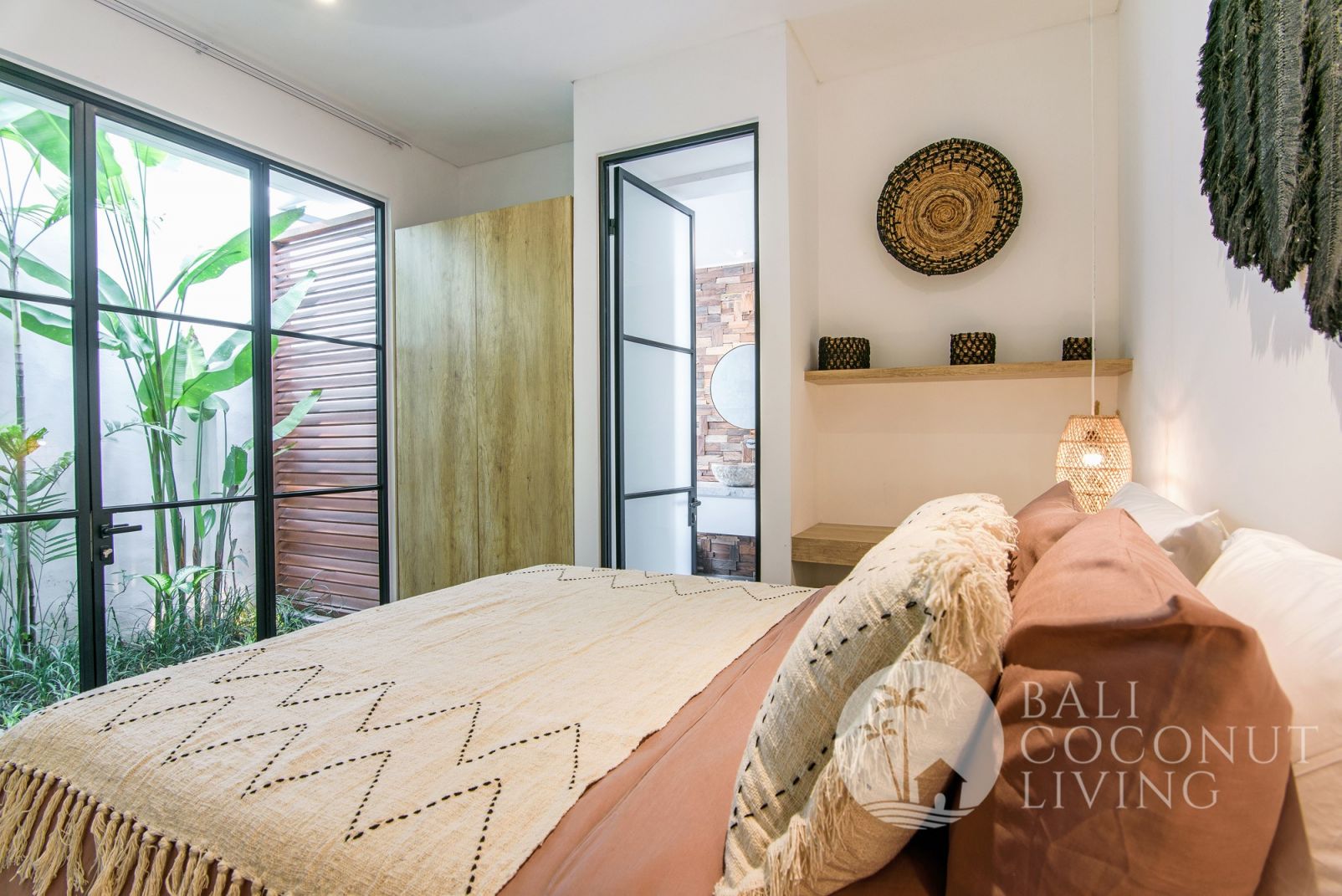 Step into a serene Mediterranean-inspired haven where modern architecture meets timeless tropical charm. This stunning villa blends soft neutral tones, textured walls, and lush greenery, creating an elegant yet relaxing atmosphere perfect for Bali living. The villa was built on 132-142 sqm of land size. The villa consists of 2 bedroom, 2 bathroom, an enclosed living, kitchen, private swimming pool