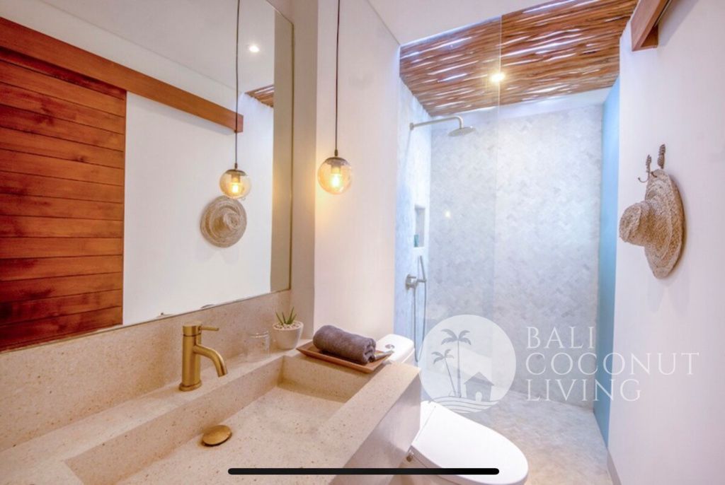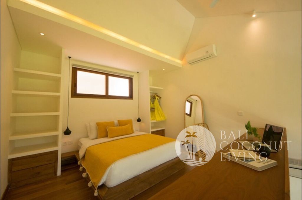This cozy 2 bedroom villa in Berawa offers a perfect blend of modern design and comfortable living. Set on 100 sqm of land, the property features a clean architectural style with warm wooden accents and large windows that invite plenty of natural light, creating a bright and welcoming atmosphere throughout the home. Inside, you’ll find a cozy enclosed living area that seamlessly connects to t