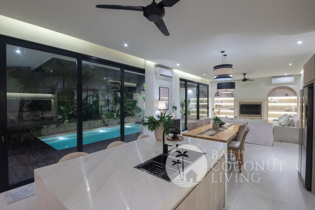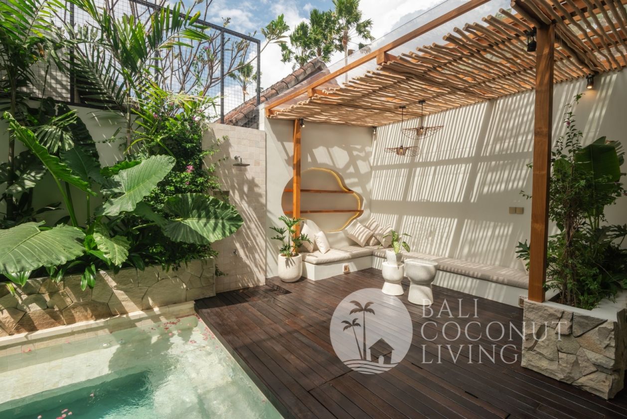 A stylish 3 bedrooms villa located in the good area of Berawa is now on the market for monthly rental. The villa features 3 en-suite bedrooms with en-suite bathroom in each room, en-closed living and dinning area, equipped kitchen, a private swimming pool and private parking space.