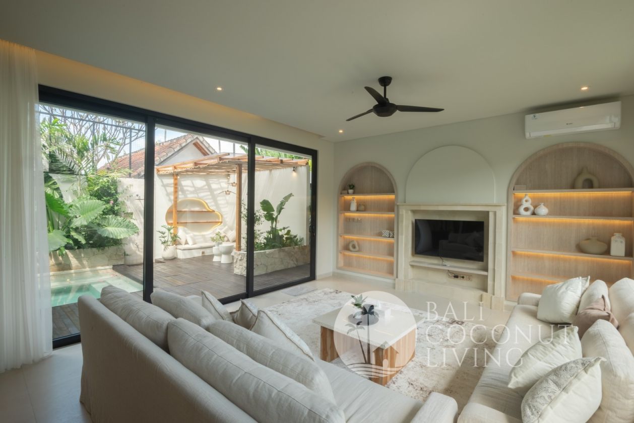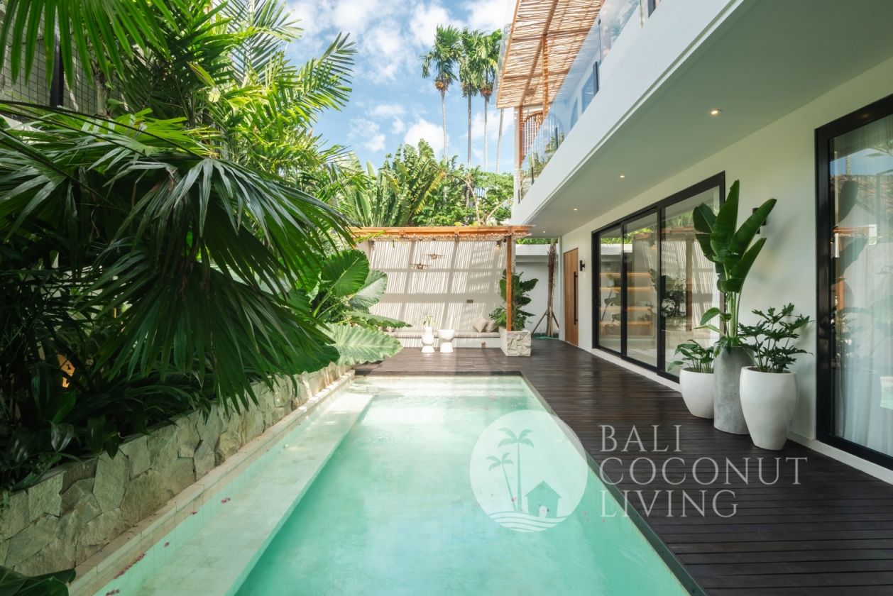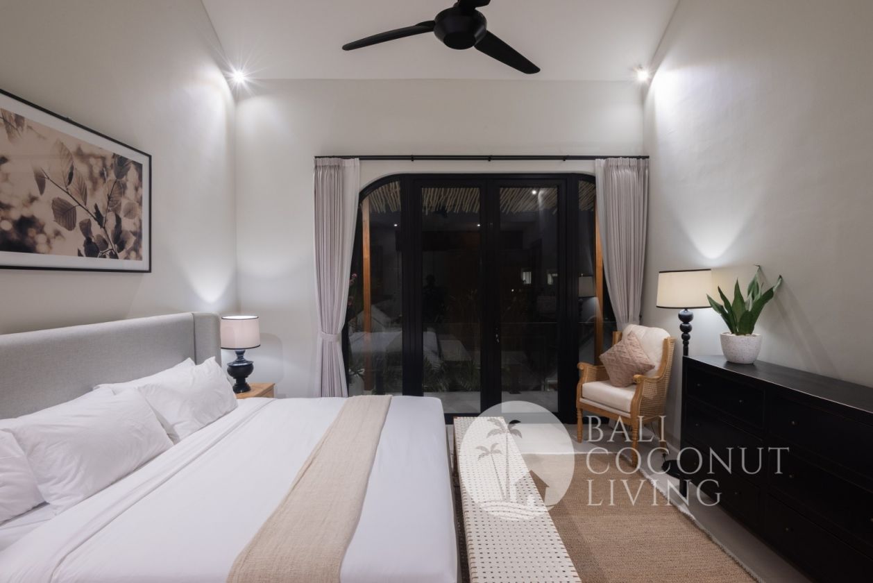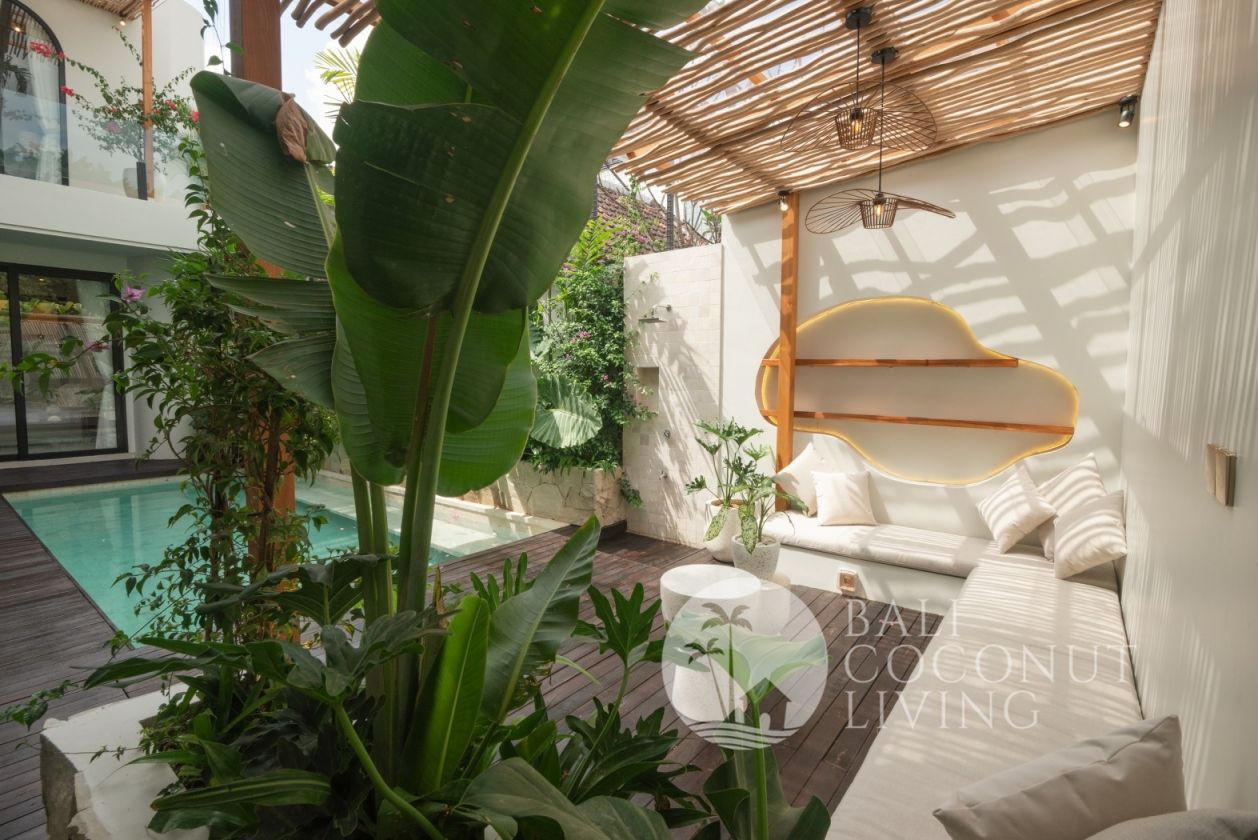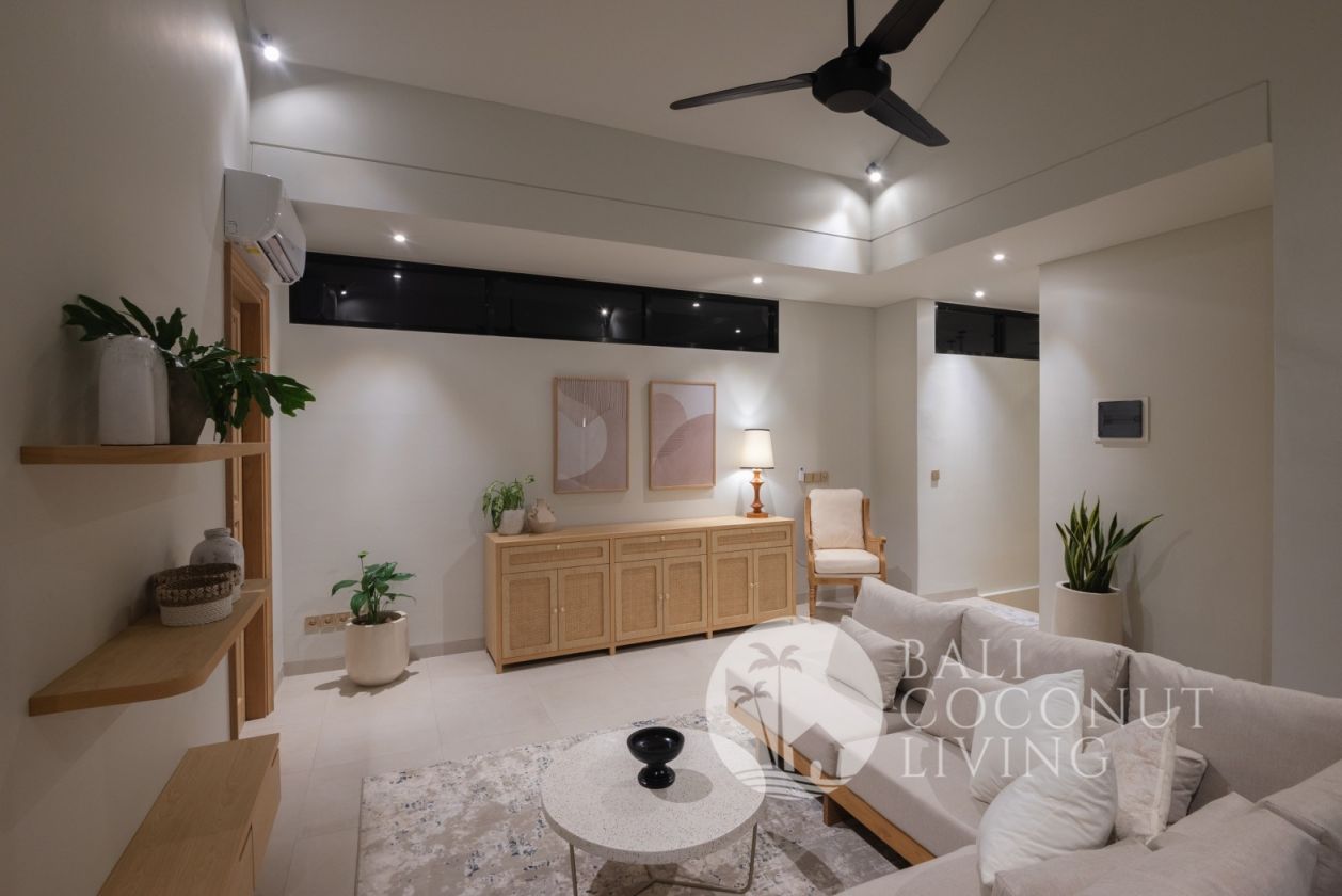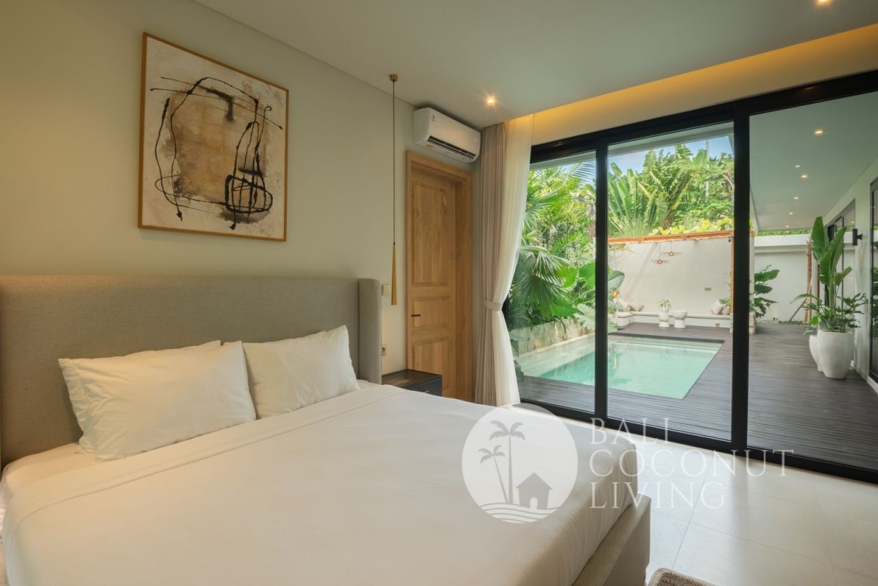 This stylish villa offers the perfect blend of comfort and modern living, located in the peaceful area of Tumbak Bayuh, just minutes away from the vibrant lifestyle of Canggu. Featuring 2 bedrooms with en-suite bathrooms, the villa is designed with a bright and airy layout, seamlessly connecting indoor and outdoor spaces. The enclosed living area opens directly to a private swimming pool with a