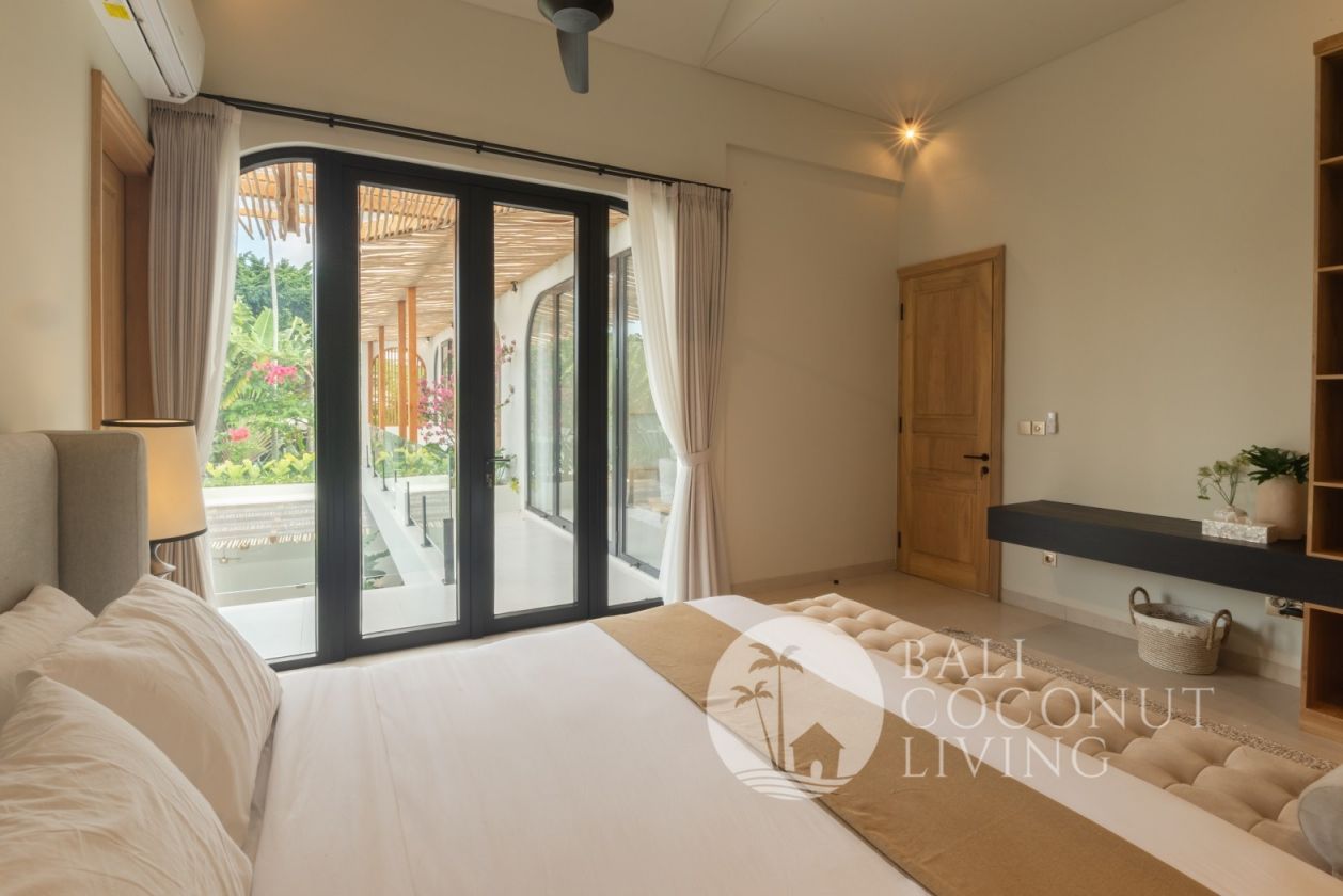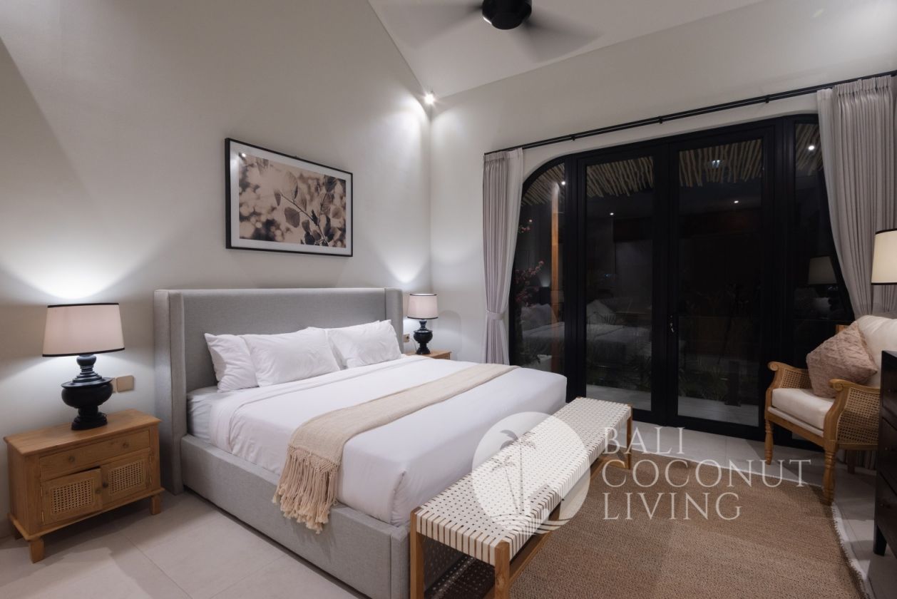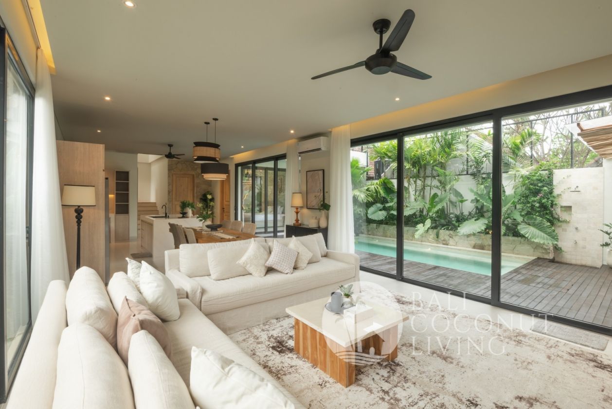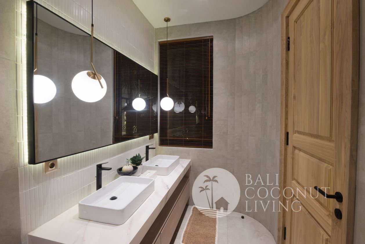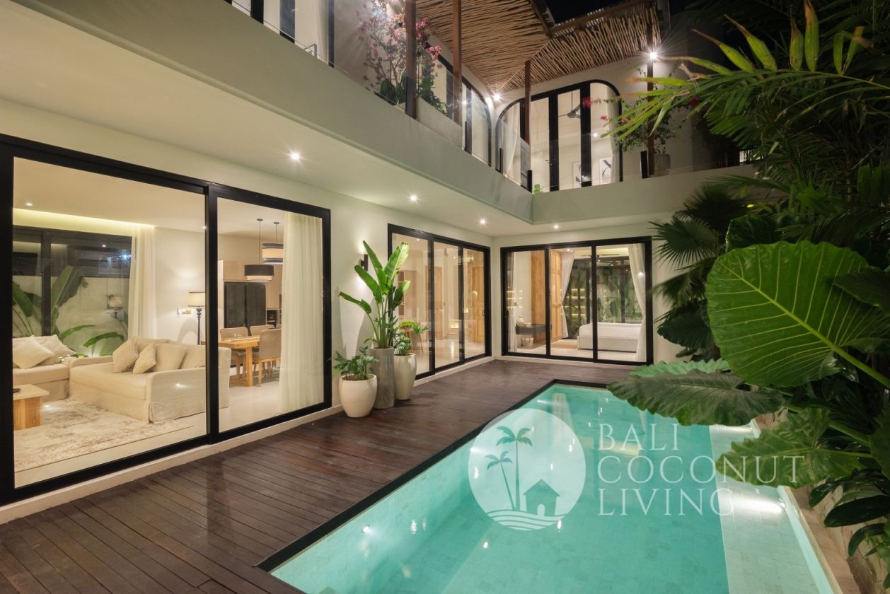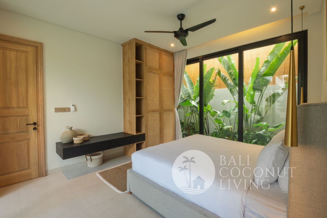 This stylish villa offers the perfect blend of comfort and modern living, located in the peaceful area of Tumbak Bayuh, just minutes away from the vibrant lifestyle of Canggu. Featuring 2 bedrooms with en-suite bathrooms, the villa is designed with a bright and airy layout, seamlessly connecting indoor and outdoor spaces. The enclosed living area opens directly to a private swimming pool with a