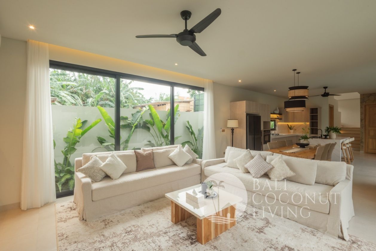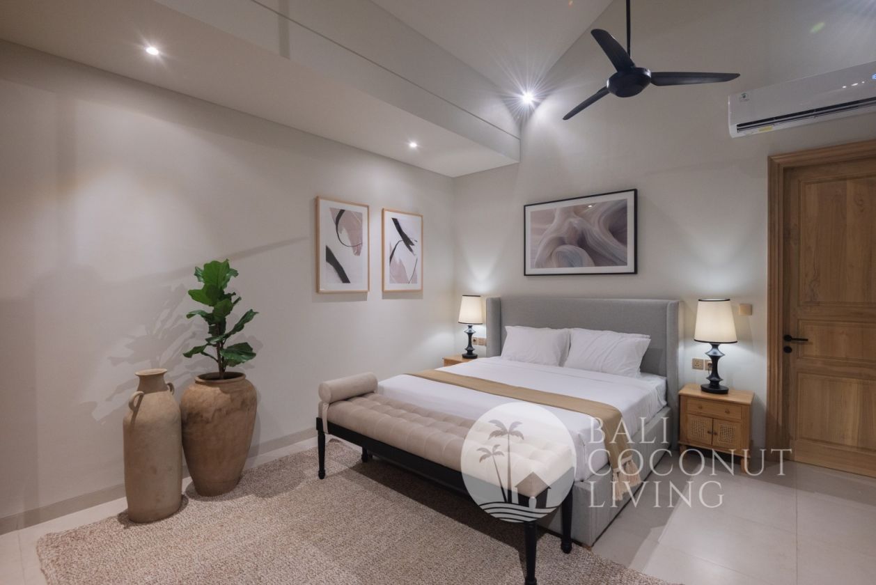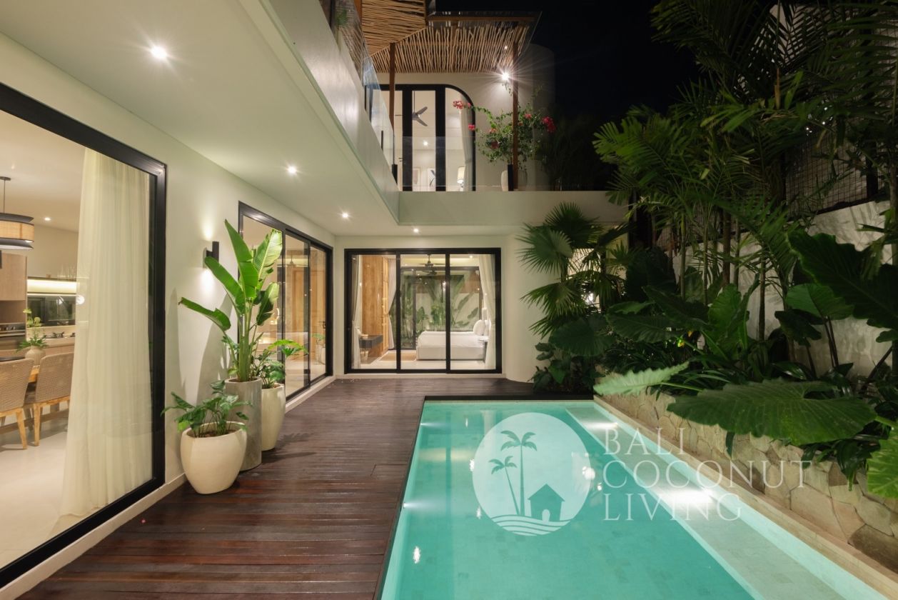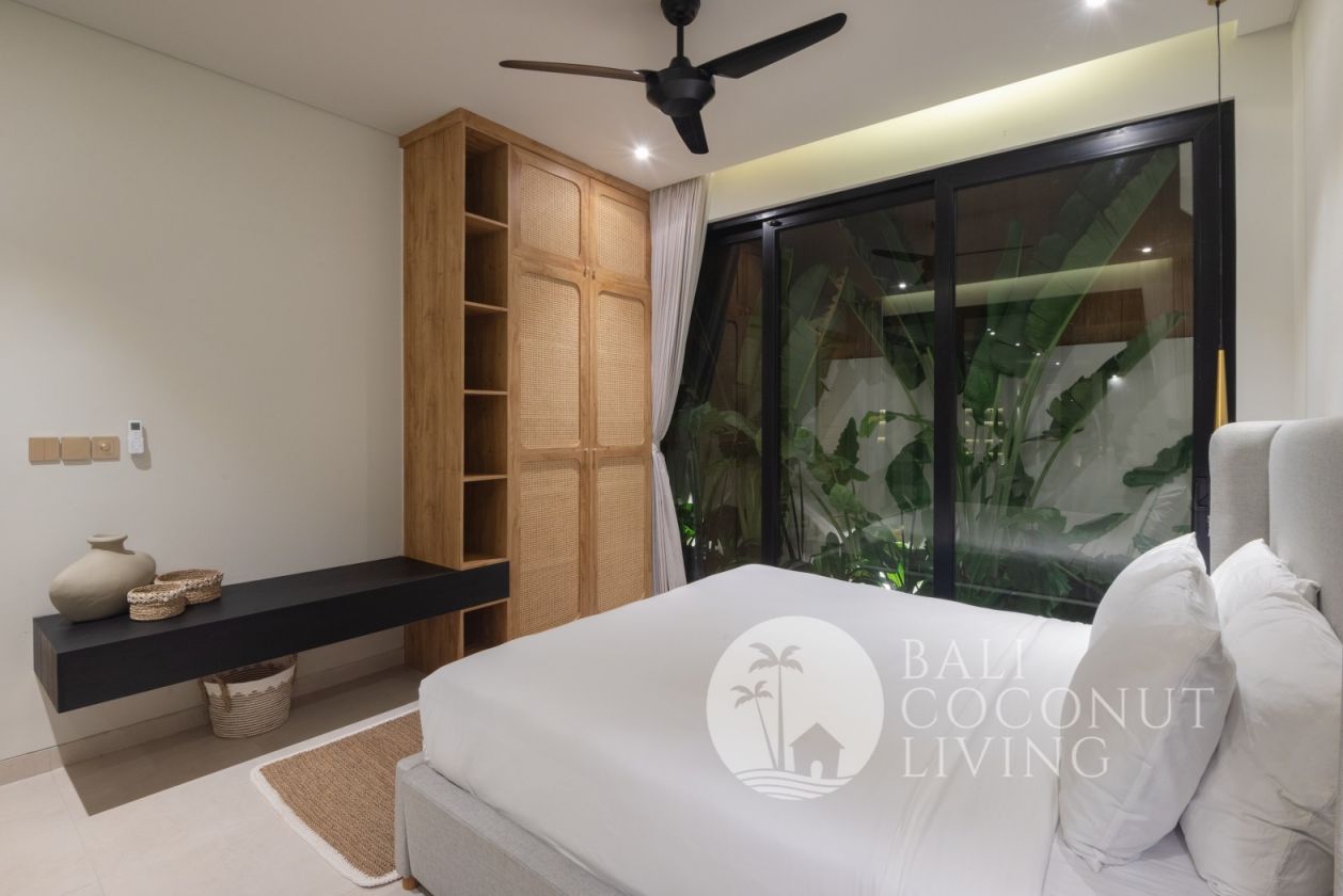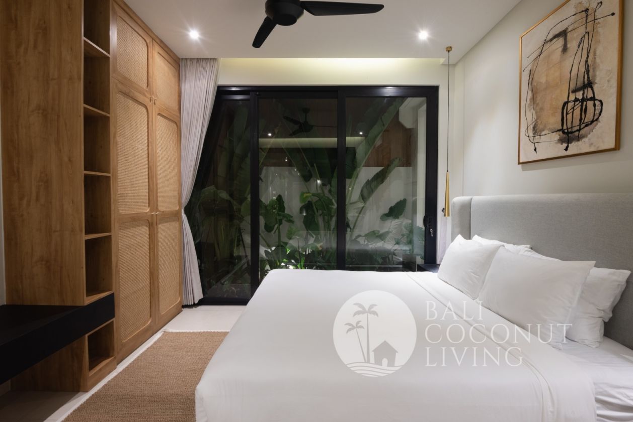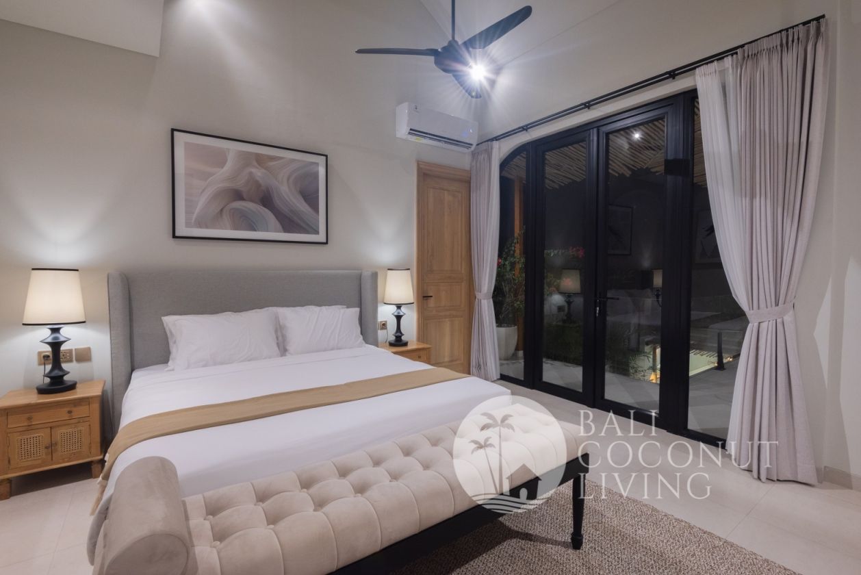 This stylish villa offers the perfect blend of comfort and modern living, located in the peaceful area of Tumbak Bayuh, just minutes away from the vibrant lifestyle of Canggu. Featuring 2 bedrooms with en-suite bathrooms, the villa is designed with a bright and airy layout, seamlessly connecting indoor and outdoor spaces. The enclosed living area opens directly to a private swimming pool with a