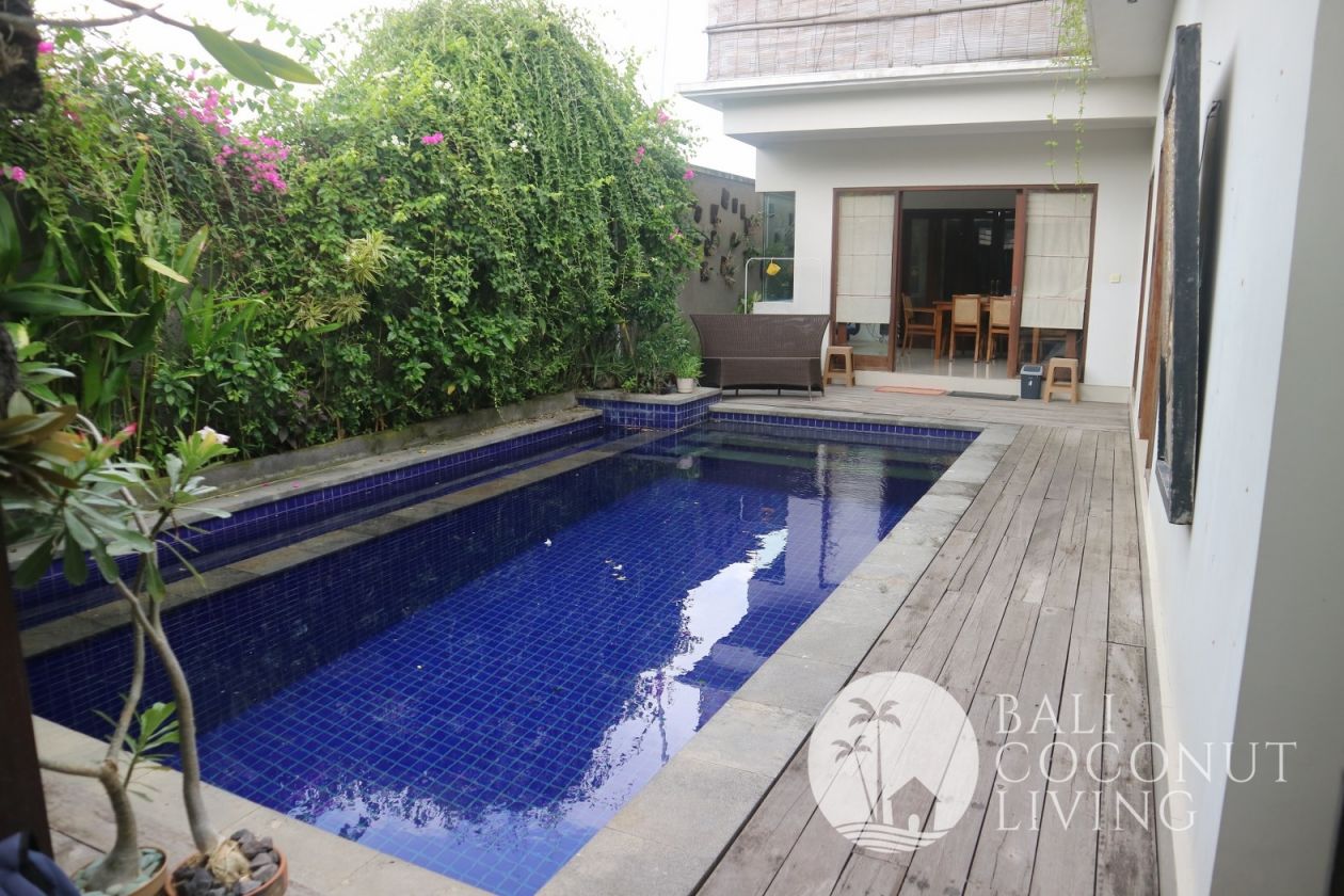 Comfortable 3 bedroom villa situated in the nice residential area of Kerobokan is now available. The villa consists 3 en-suite bedroom, equipped kitchen, closed living, pool and parking space.