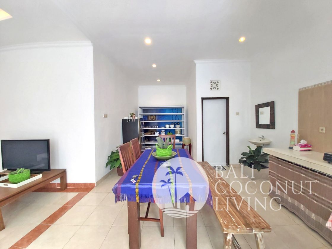Introducing a lovely 2 bedrooms family home is nestled in a lovely Kerobokan neighborhood. The 160 sqm land allotment features a spacious layout, comprising of 2 bedrooms with 2 en-suite bathrooms, an equipped kitchenette, a closed living space, a private swimming pool and a private parking space. If you're seeking a peaceful escape from the hustle and bustle of Kerobokan, look no further than