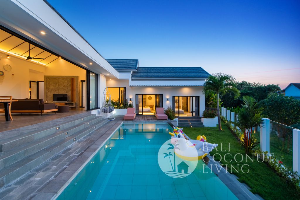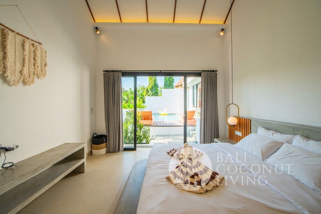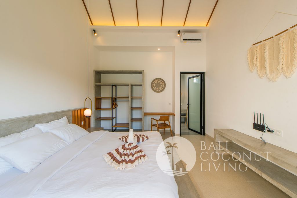 There is a fantastic Boho-style villa in Padonan available for monthly rental, featuring 3 bedrooms with luxury ensuite bathrooms, an equipped kitchenette with an open-plan living and dining area, a private swimming pool, a manicured lawn, and a parking spot. The villa is situated in a peaceful location.