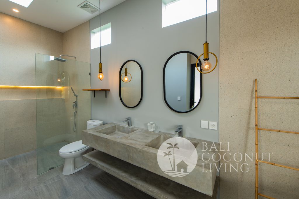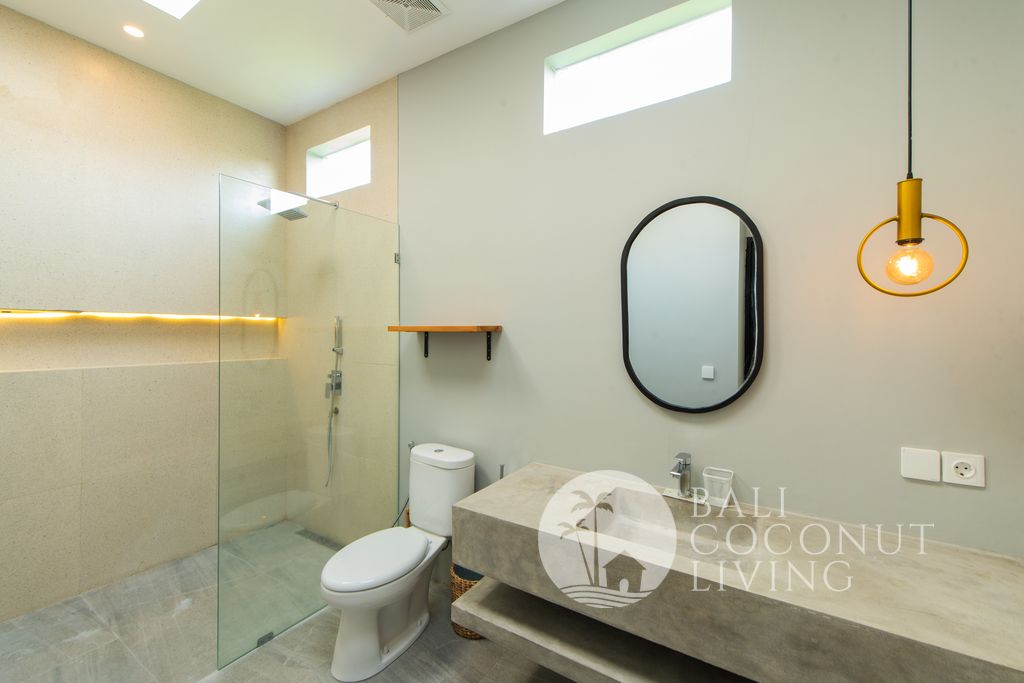 Beautifully villa situated in the heart of Umalas, this 2 bedroom loft style villa is the perfect retreat for those looking to experience the comfort of Bali living. This beautiful villa built on 200 sqm of land size and 140 sqm of building size. With its modern design loft style and impeccable attention to details, this villa boasts a spacious en-closed living and dining area, an equipped kitchen