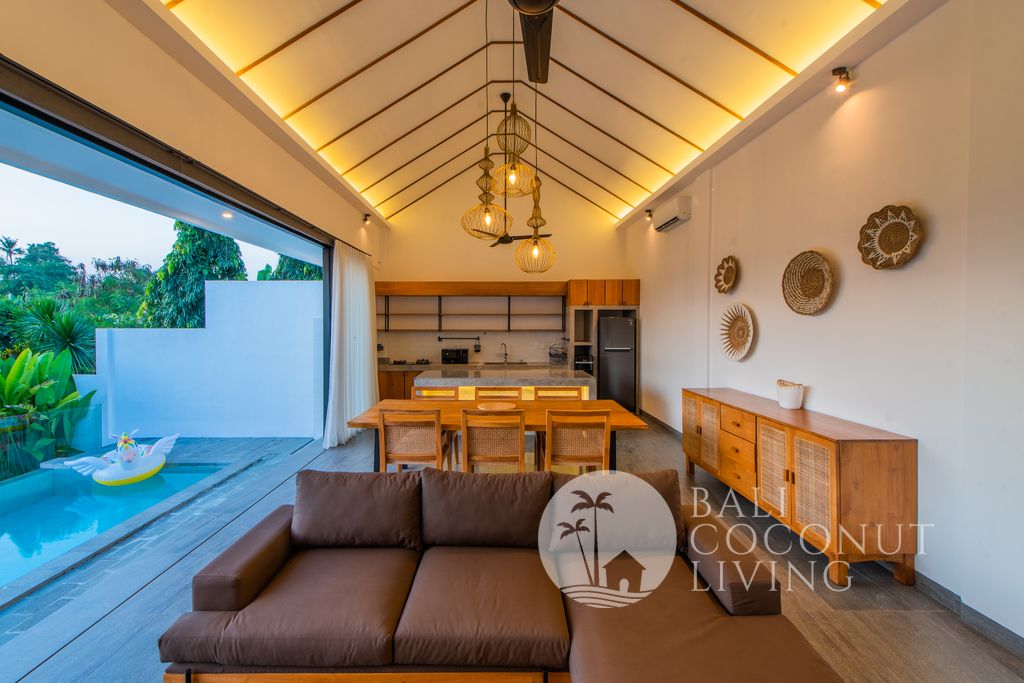 This charming tropical villa offers a peaceful escape surrounded by lush greenery and open space. The villa features a cozy enclosed living area, a spacious garden perfect for relaxing or outdoor dining, and a warm traditional Balinese touch in its design. Ideal for couples or small families looking for a serene home in Bali, yet still close to cafes, shops, and local attractions. Enjoy the fres
