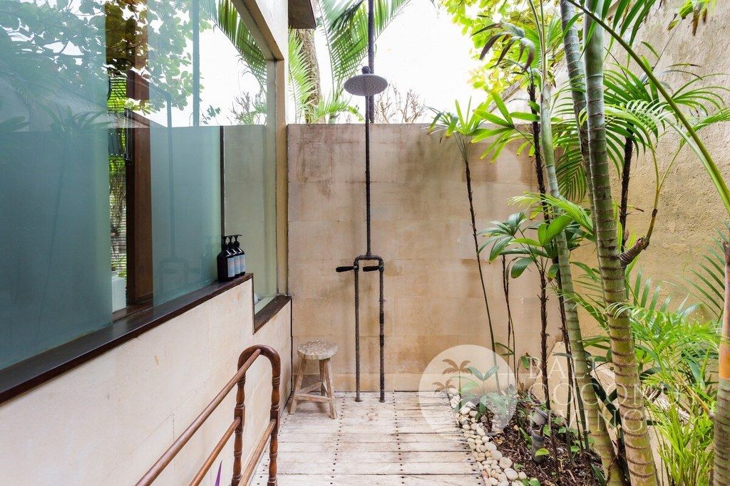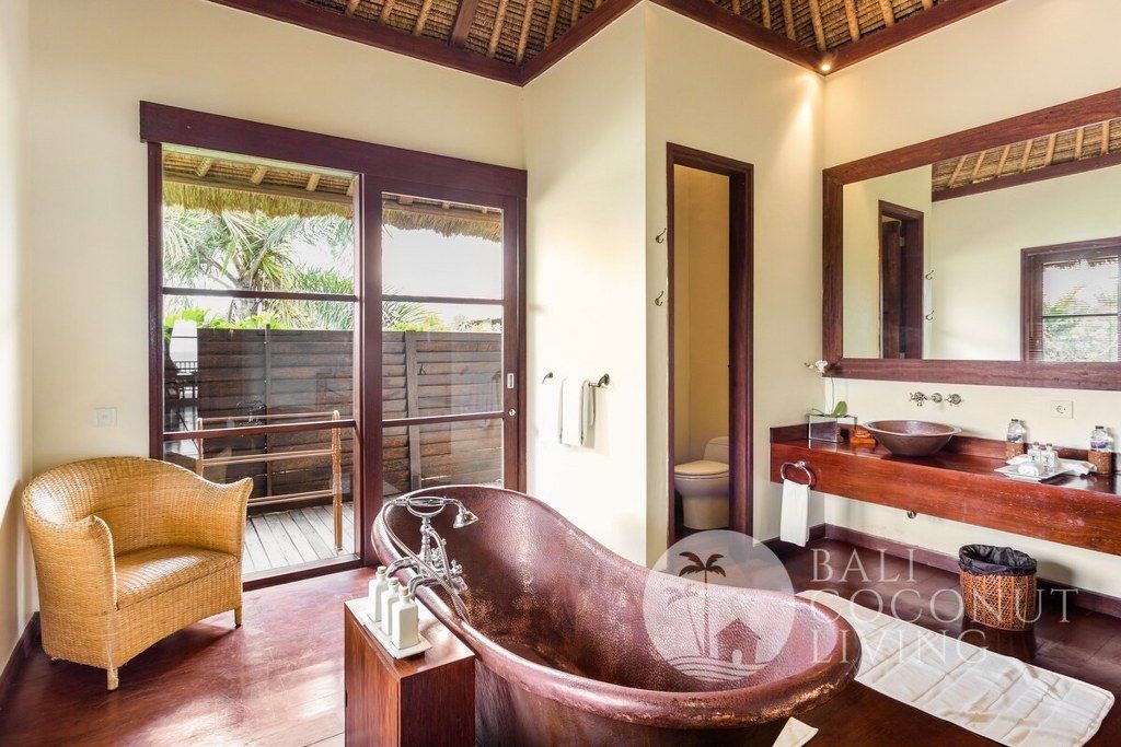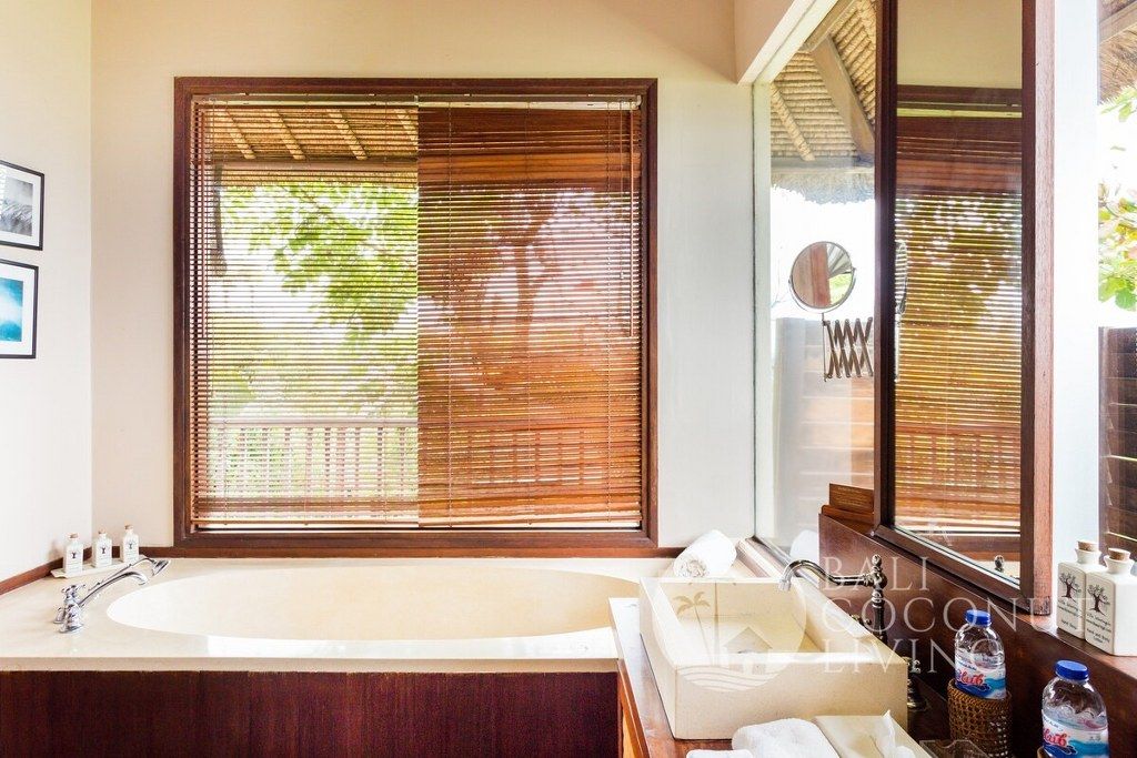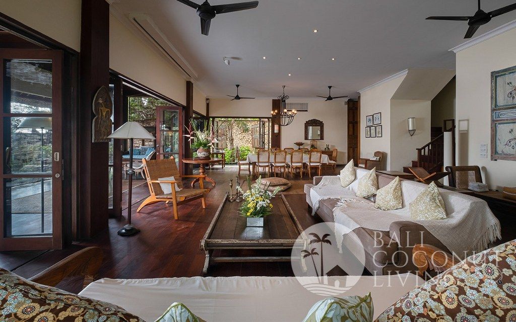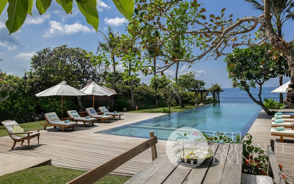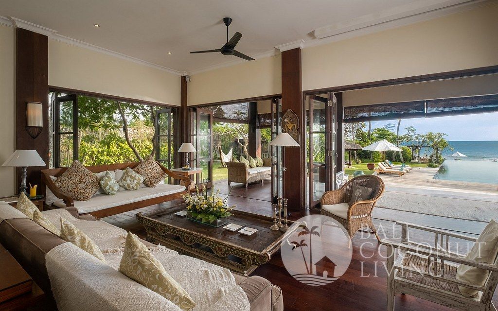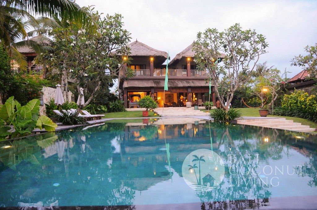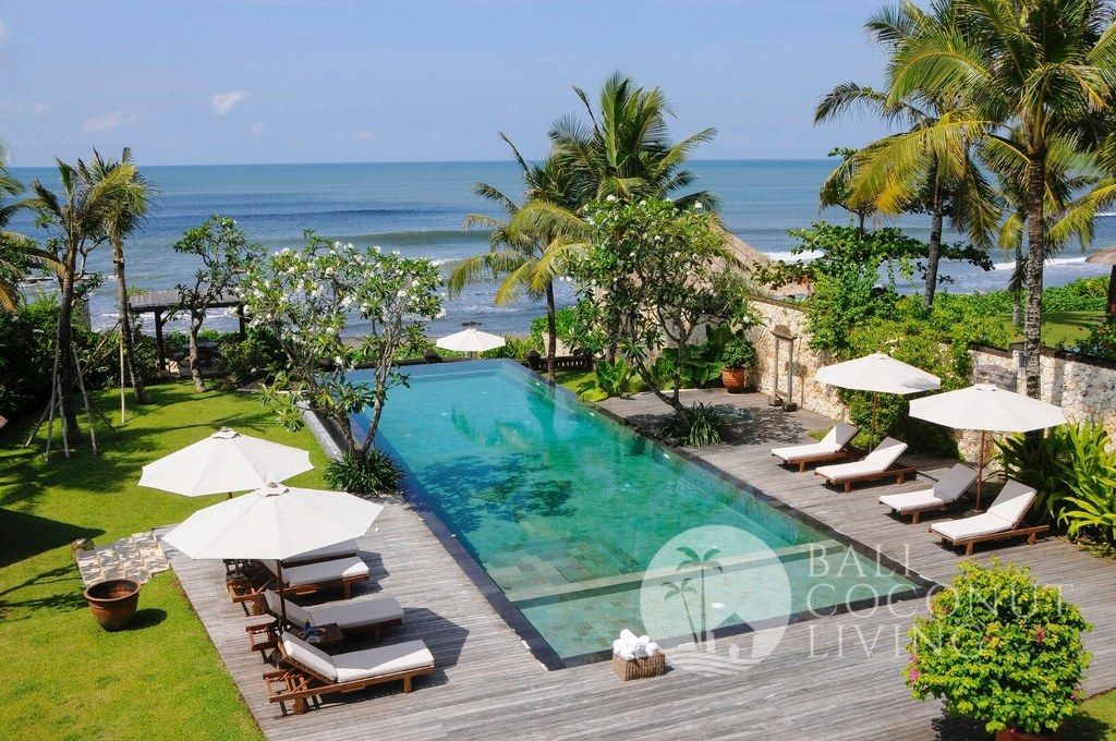 Epitomising grand scale luxury and timeless elegance, no expense has been spared in the creation of this Balinese Colonial style that stands resplendent on a 2800 m2 beachfront block. The home features 6 sizable en-suite bedrooms, an enclosed living area, a study room, guest toilet, equipped kitchen, a spa room, a gym, a swimming pool with a jacuzzi, a gazebo or outdoor dining area, terrace and balcony, manicured garden with tropical vegetation, a tennis court, and a parking space.