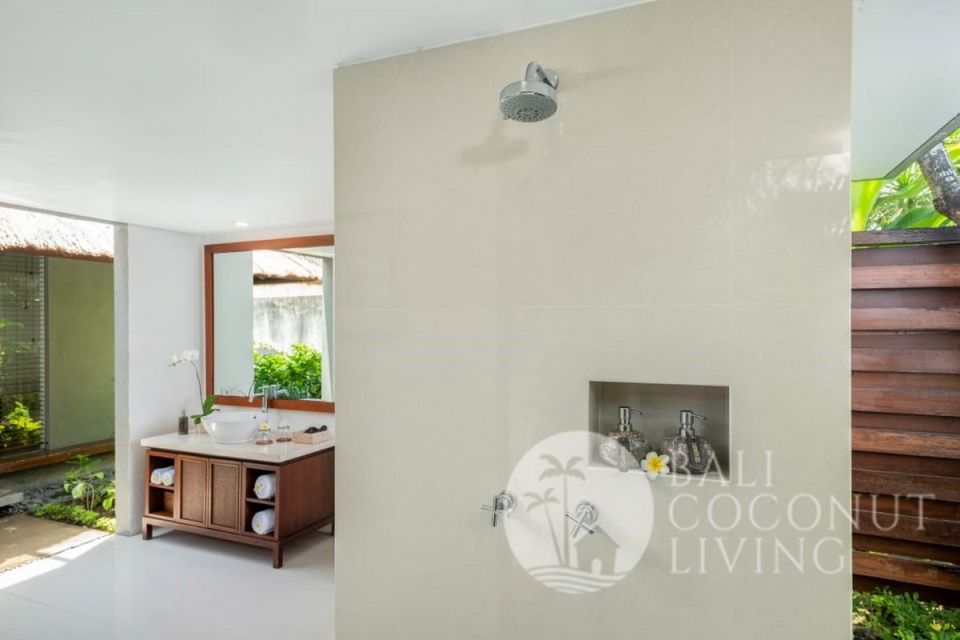 This elegant modern villa offers the perfect balance between tropical vibes and contemporary comfort. Designed with a closed living area, it ensures privacy and comfort while keeping the space bright and airy through wide glass doors overlooking the pool. Featuring 3 spacious bedrooms with ensuite bathrooms, a kitchen with warm wooden finishes, and a stylish living room that creates a cozy and