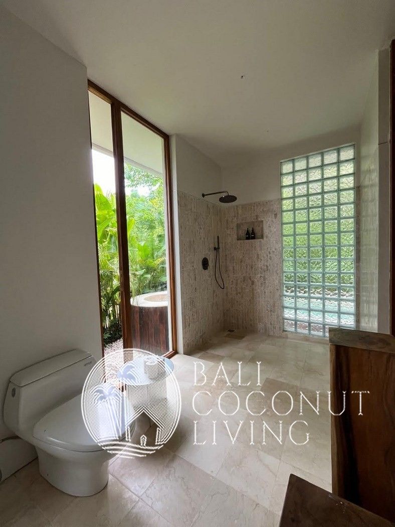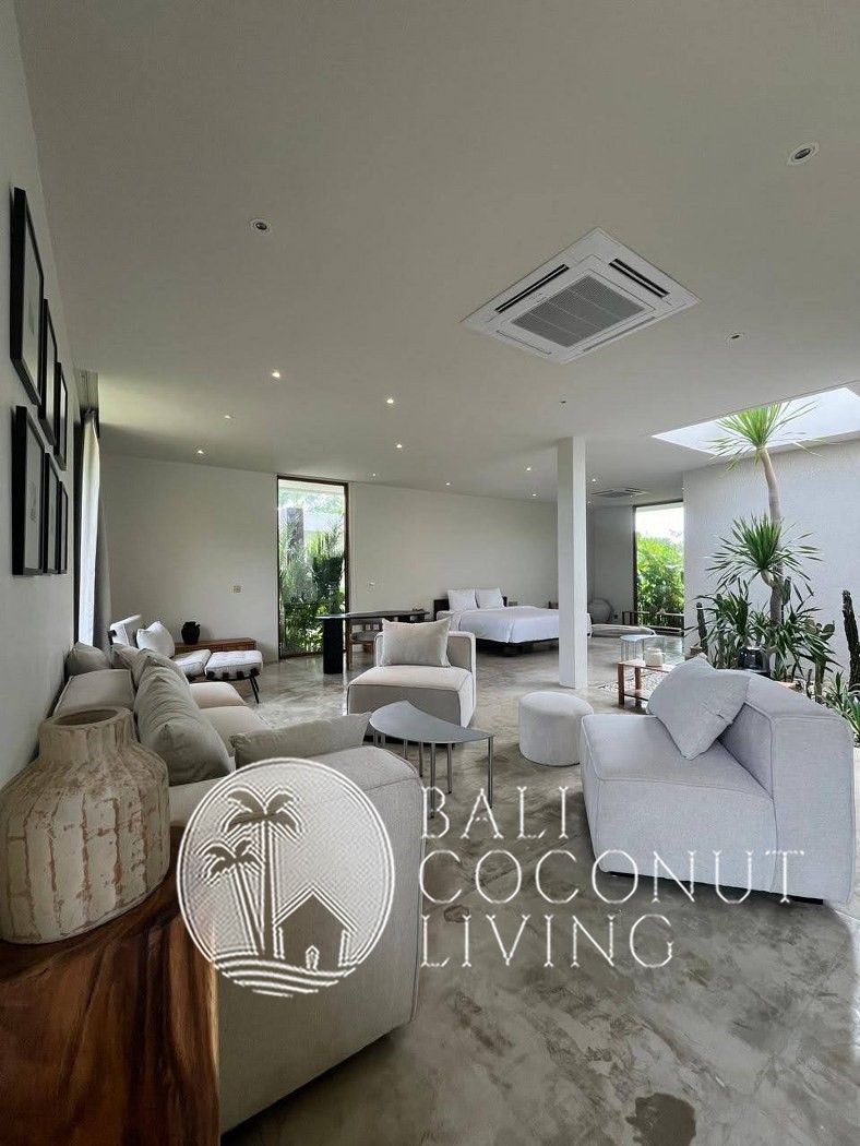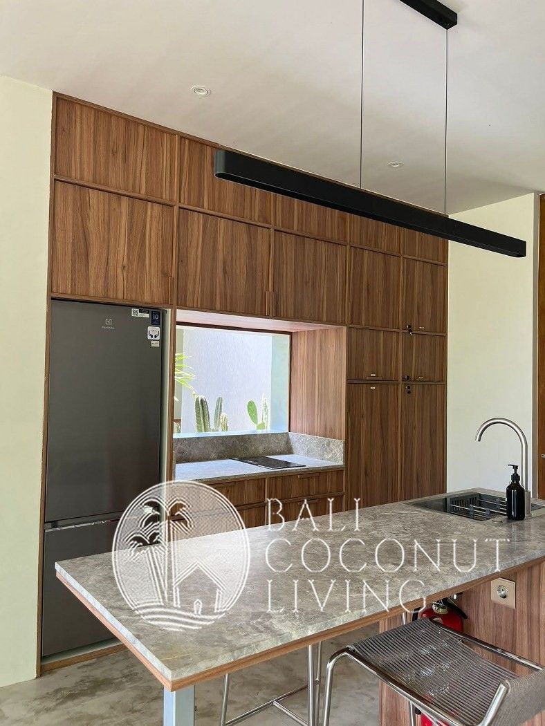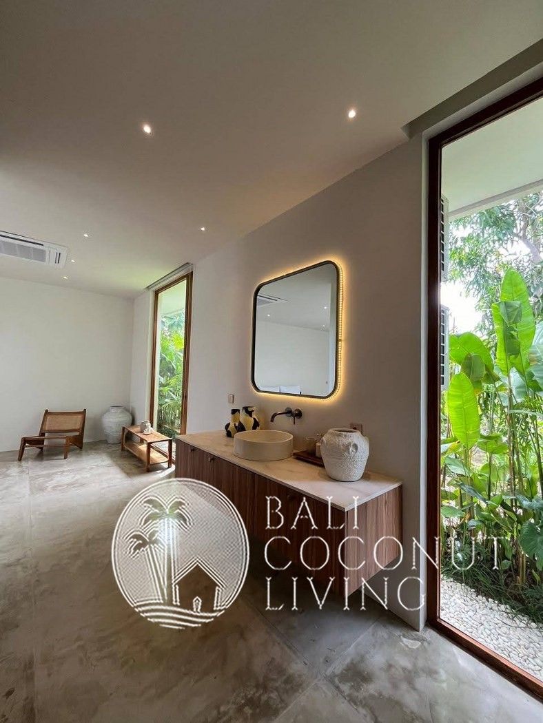 Introducing a lovely this 3-bedrooms villa in Canggu area, 1-story villa is located in the charming and peaceful village in Bali. Experience the perfect blend of modern comfort and tropical serenity in this stunning villa. Featuring a sleek contemporary design with natural wood accents, enclosed living and dining area, complete with comfortable seating, an equipped kitchenette, a private swimming