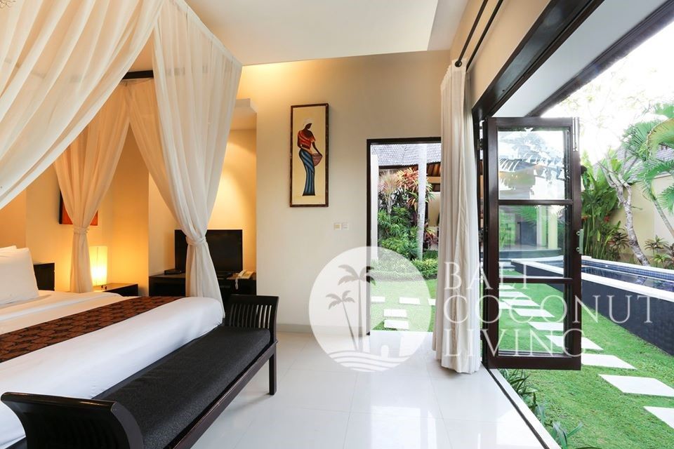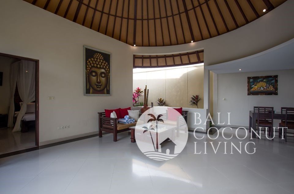 The open plan living area provides direct access to the garden and pool. After a long day, sit back and relax in the comfortable living area, filled with natural light. Tucked away in a peaceful laneway in a safe complex villa, this property gives not only the comfort and warm feeling, but also every day feels like a vacation. Enjoy every minute of your time staying in this villa. Within proximity up to 10 minutes drive to many popular places in Berawa, central Canggu and Petitenget. Villa Dena 2 is available for monthly rental.