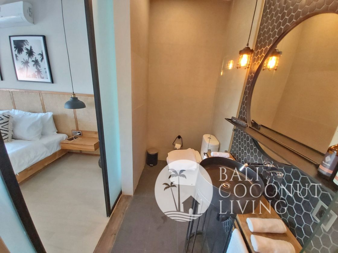 This modern townhouse style villa is perfect for anyone of you who are looking for a one bedroom property for holiday nest as well as for business purposes while you and your loved ones away. With modern design and furnishing brings the nuance of elegance and sophisticated look which ensure comfort for anyone who stay. Stone's throw away to one of Bali iconic areas of Canggu along to Berawa. Owned your great investment in Bali with buying this property. Nook Villa 2B is available on the market for sale (lease until 2043).
