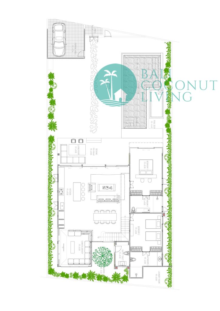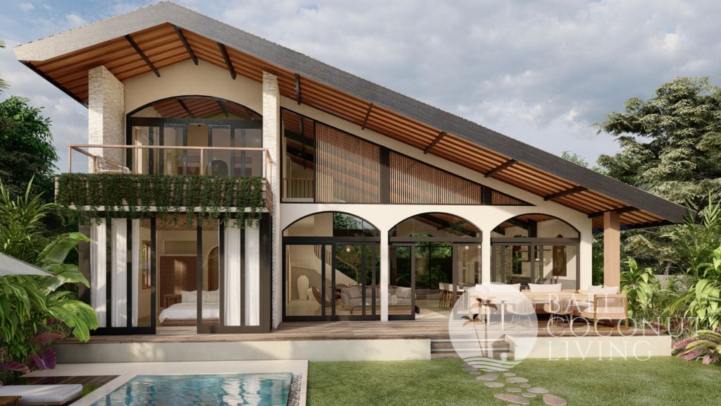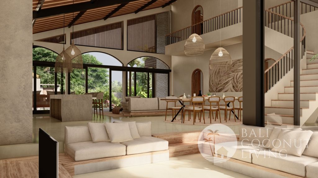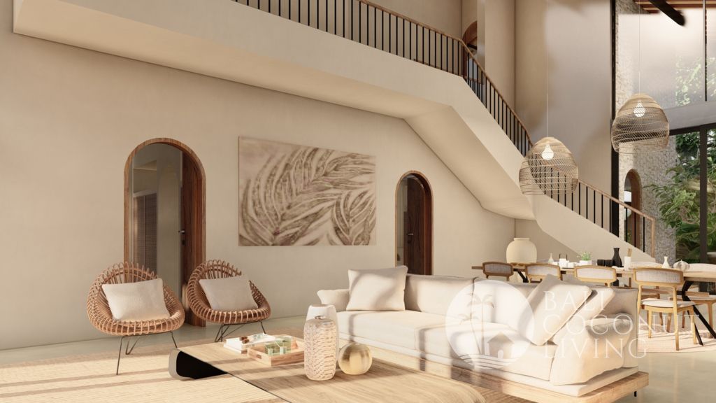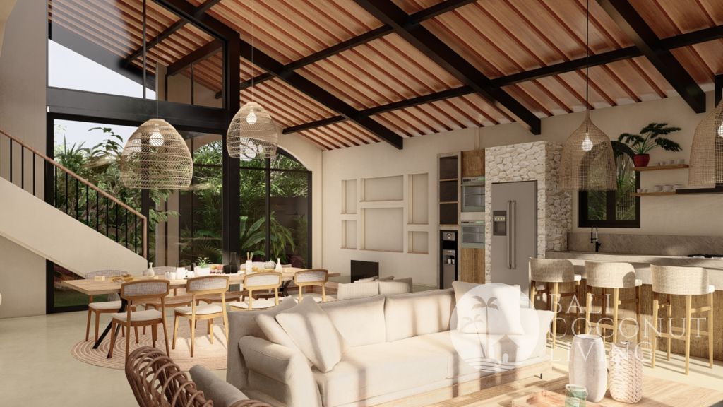 This modern 3-bedroom villa in Babakan offers a perfect blend of contemporary design and comfortable living, set on 250 sqm of land with a spacious 350 sqm building. Designed with a closed living concept, the interiors feature clean lines, soft neutral tones, and large glass windows that allow natural light to flow seamlessly throughout the space. The sunken lounge, sleek fully equipped kitchen, a