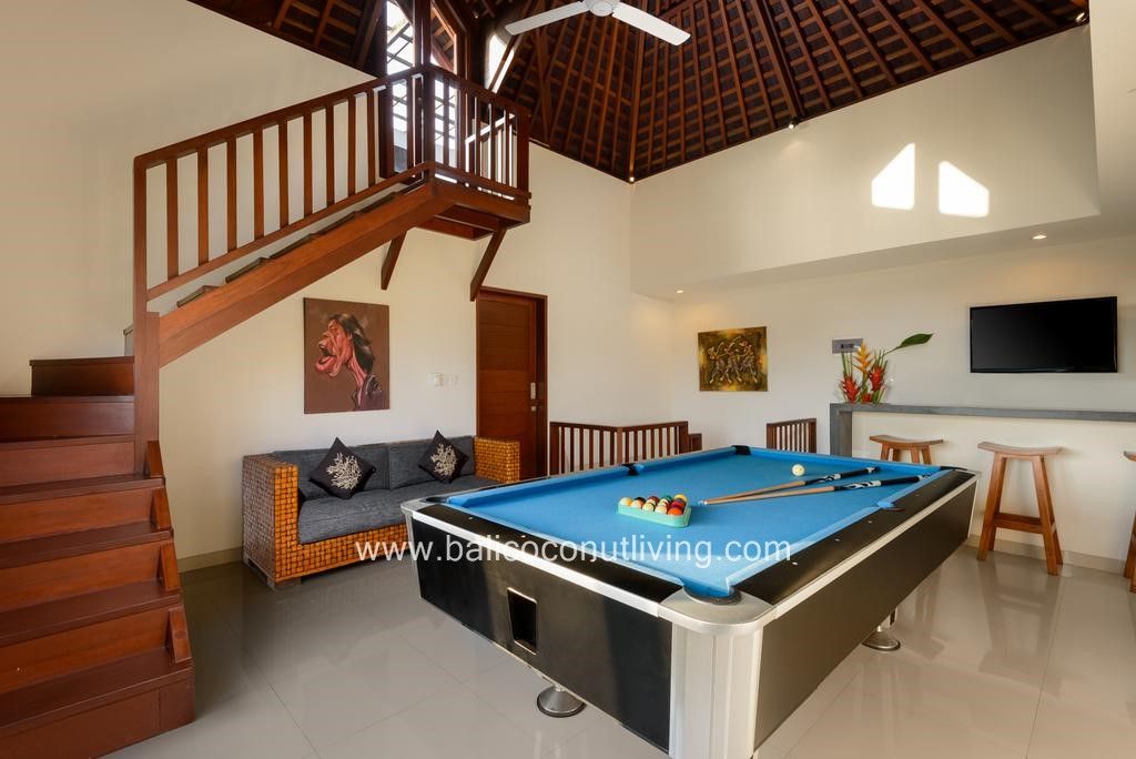 Cosy 3 villa located in a nice area of Canggu is now available for monthly rental and also for sale. The property set on 155 sqm of land with 215 sqm of building size. The villa consists of 3 bedrooms with ensuite bathrooms, 2 level house, rooftop, fully furnished, and pool table, Garden, swimming pool, and car park available.