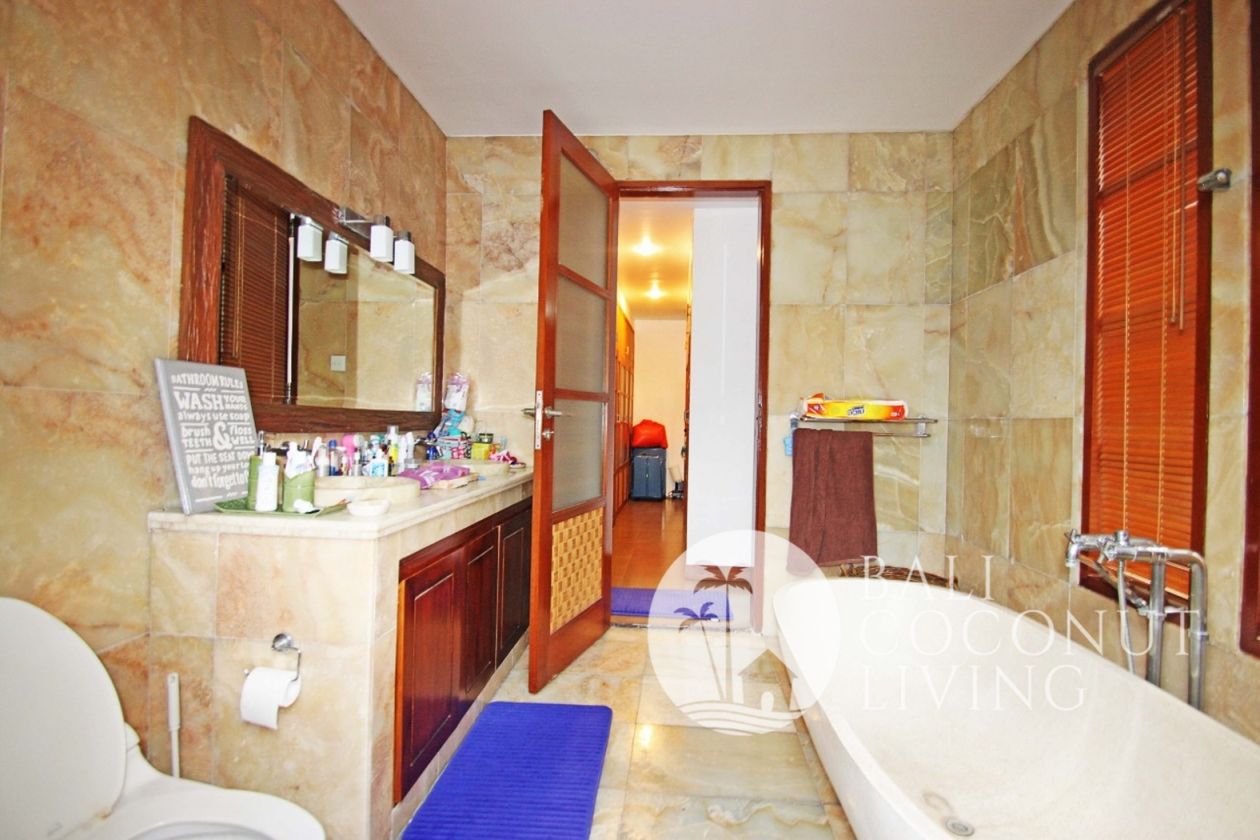 Spacious 3 bedroom villa situated in the nice and quiet area of Berawa is on the market for sale. The villa built on 600 sqm of land size. The villa comprises 3 en-suite bedrooms, guest toilet, terrace, garden, fully equipped kitchen, closed living, pool and parking area.