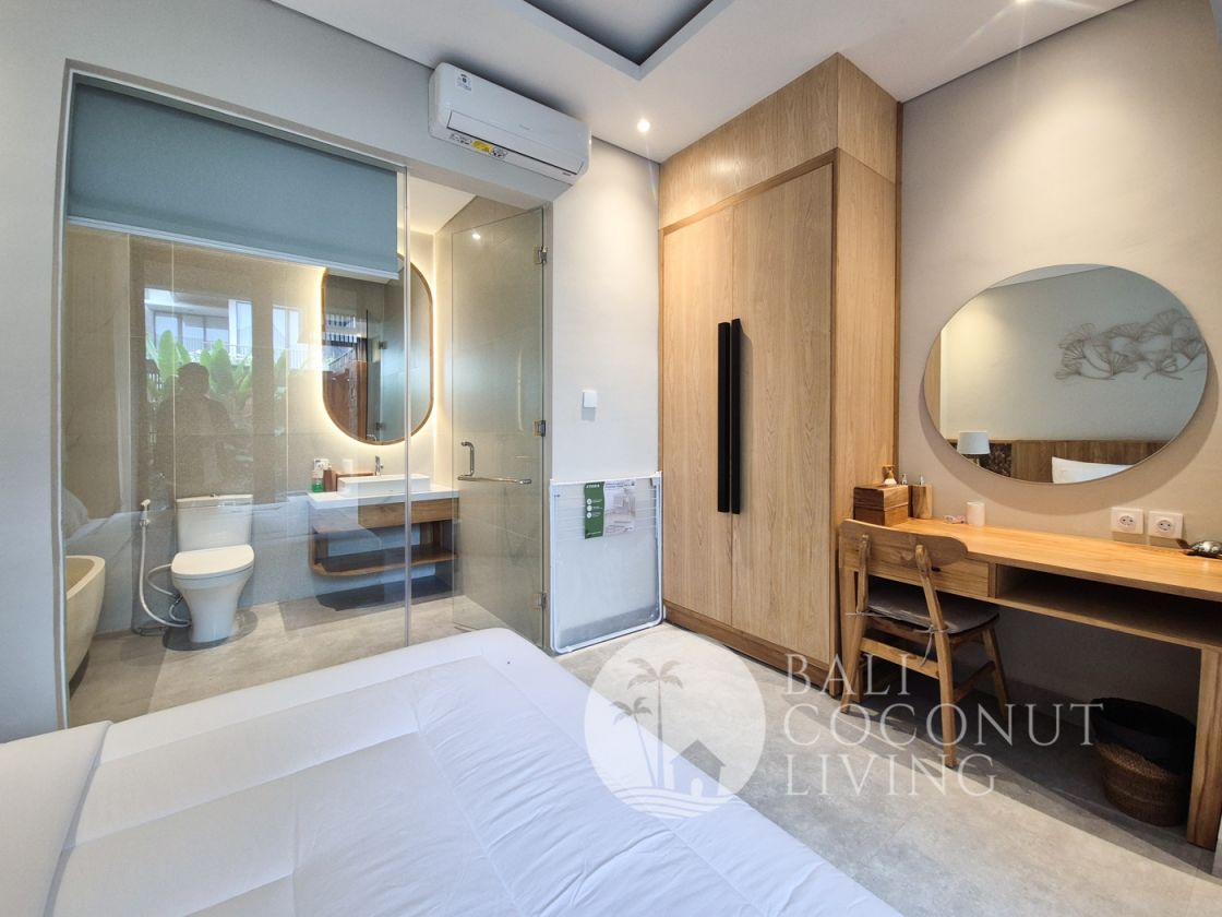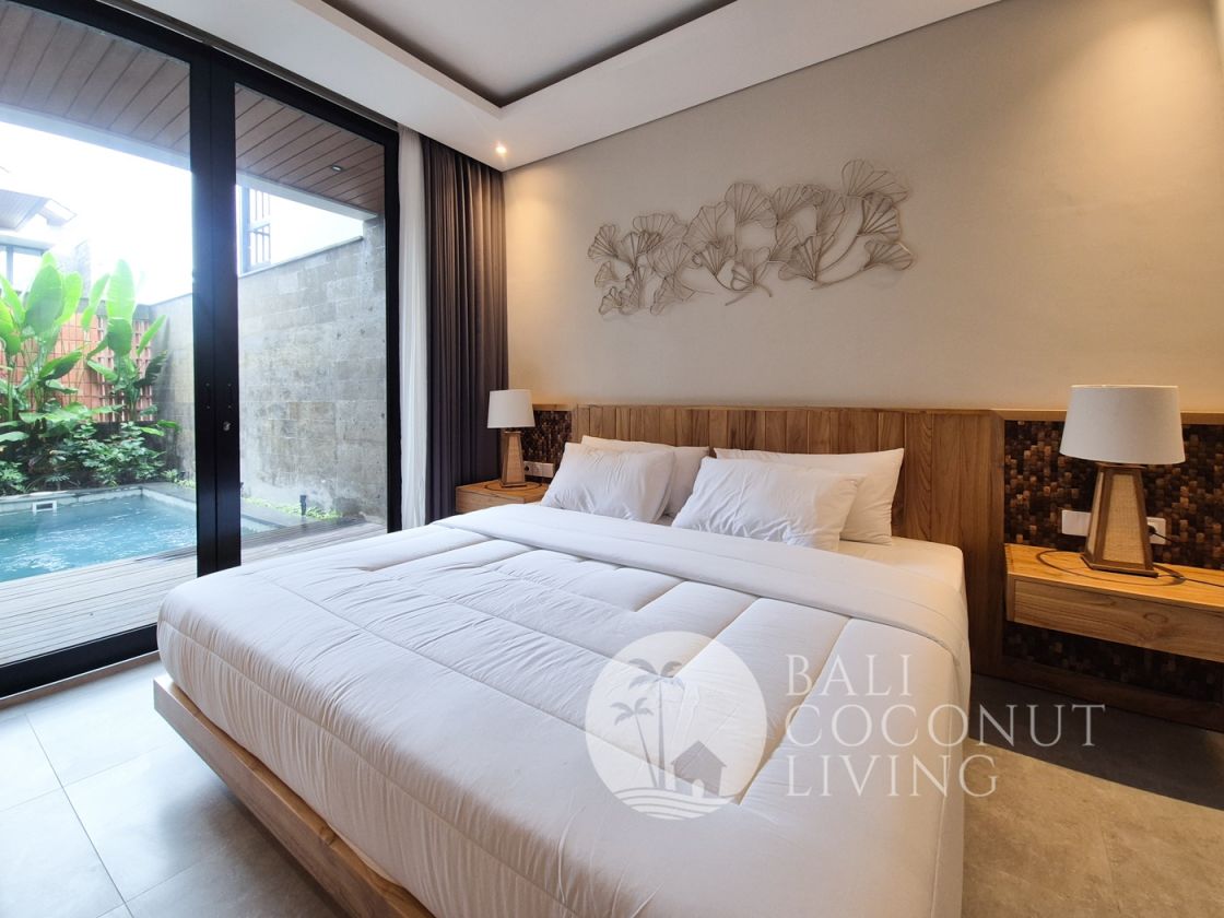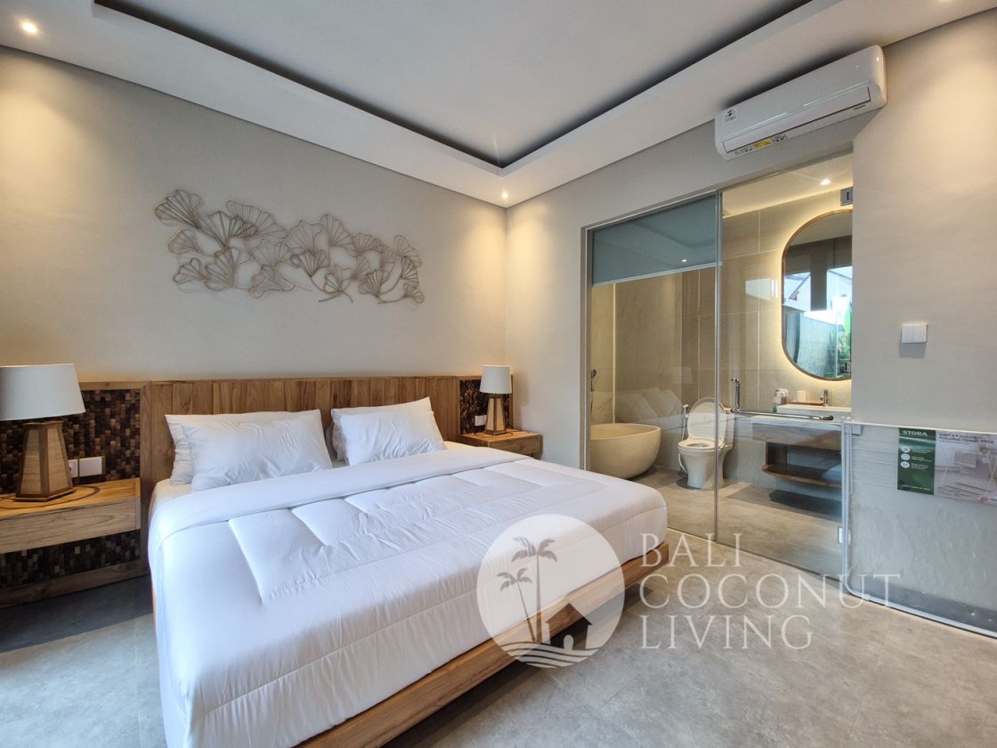 Experience modern island living in this minimalist villa designed with comfort and simplicity in mind. The clean architecture, soft neutral tones, and wooden accents create a warm and inviting atmosphere. This villa has 2 bedrooms with 2 ensuite bathrooms, large glass doors open directly to the private pool, allowing natural light to fill the space and connect indoor and outdoor areas seamlessl