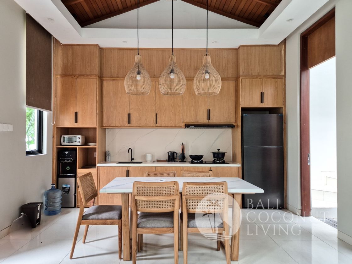Introducing a lovely this 3-bedrooms villa in Canggu area, 1-story villa is located in the charming and peaceful village in Bali. Experience the perfect blend of modern comfort and tropical serenity in this stunning villa. Featuring a sleek contemporary design with natural wood accents, enclosed living and dining area, complete with comfortable seating, an equipped kitchenette, a private swimming