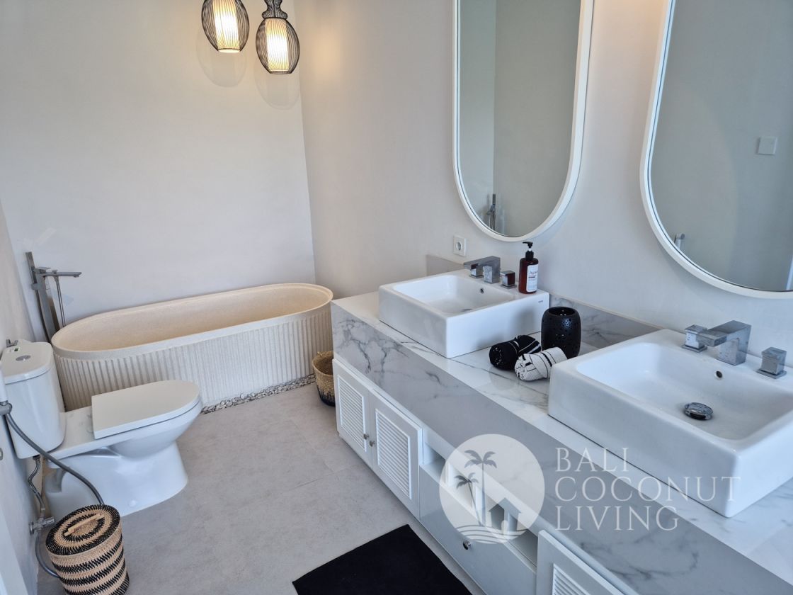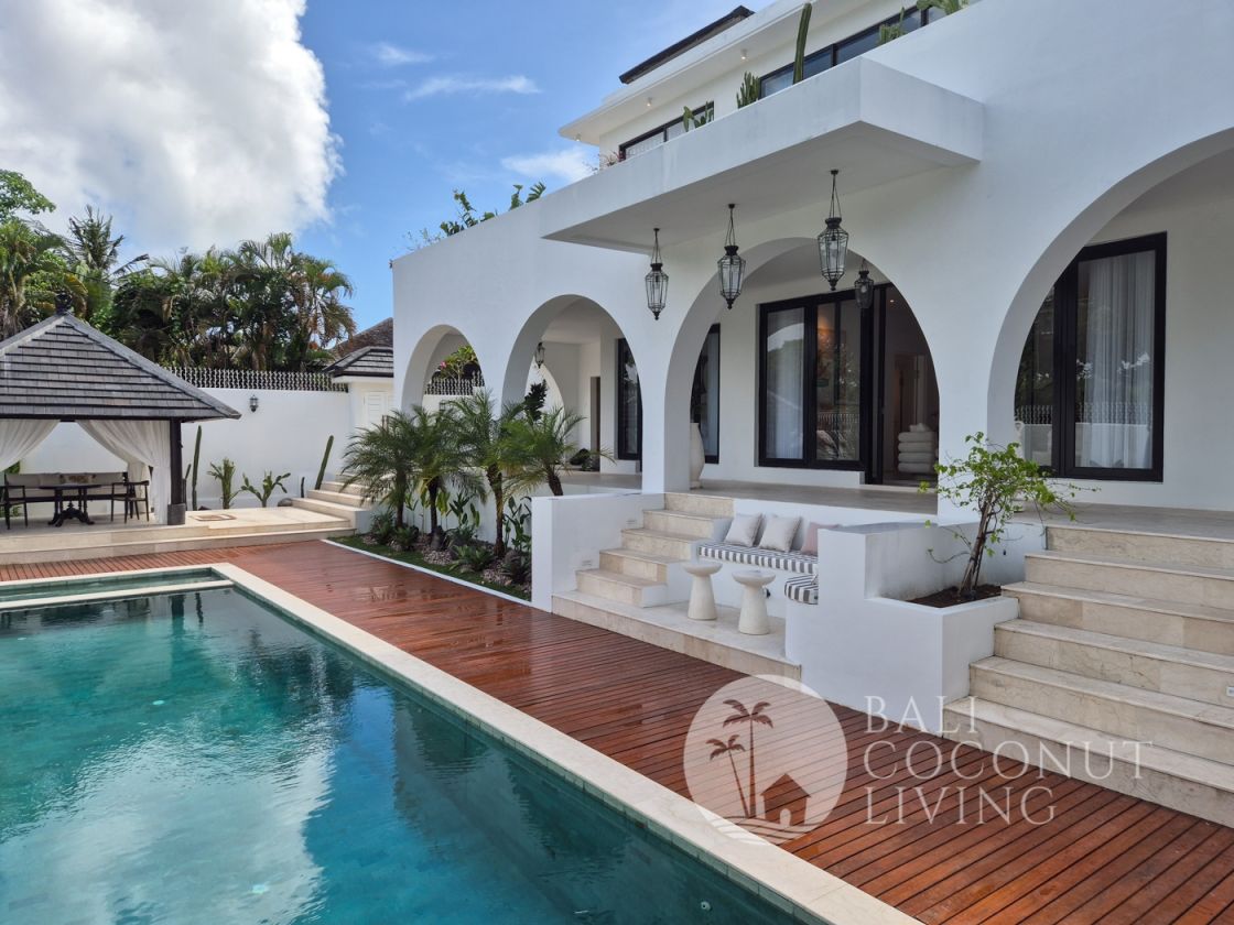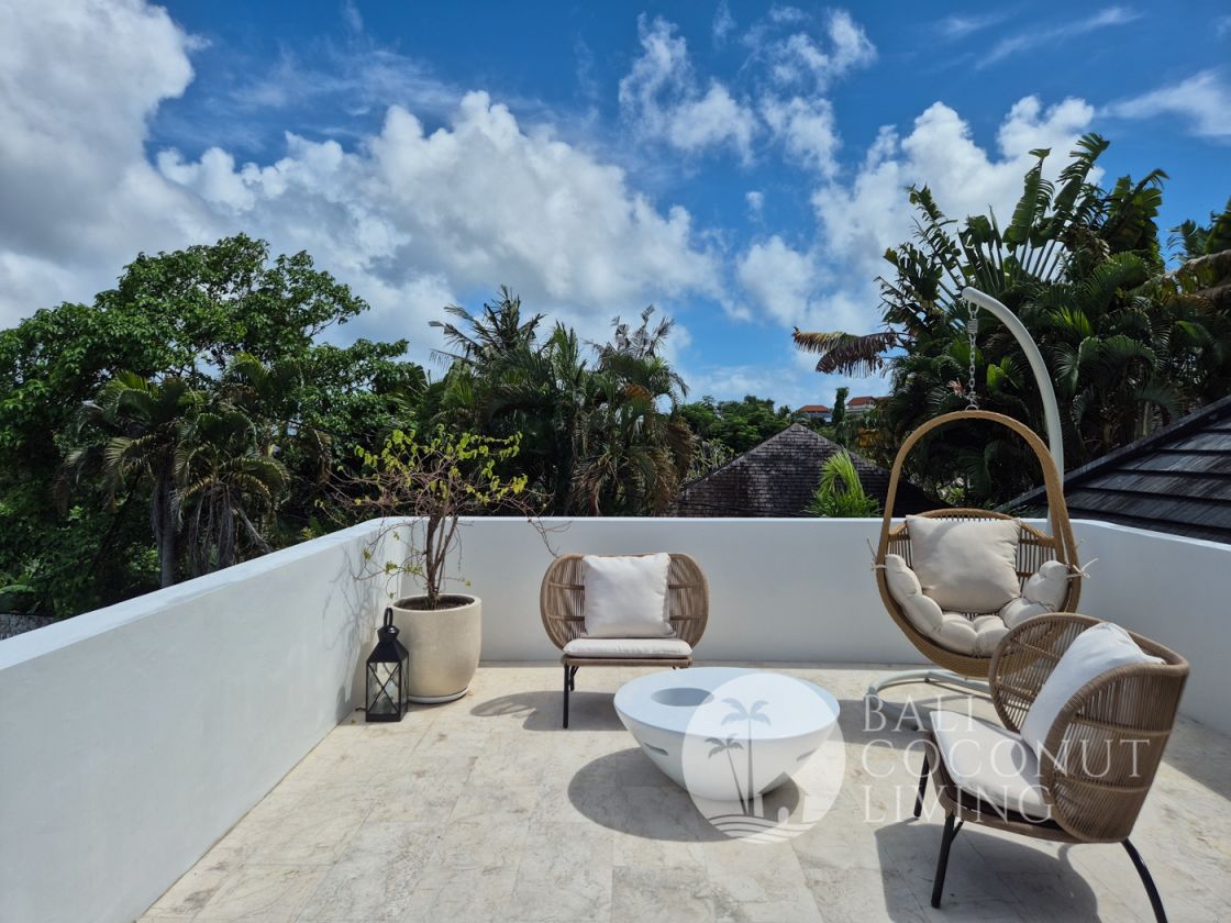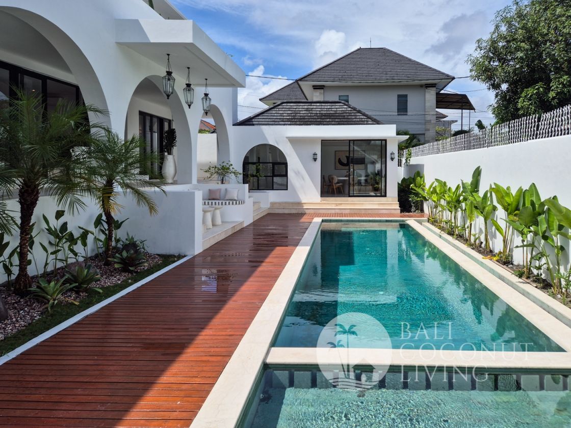 Outside, the private swimming pool becomes the centerpiece of the villa, surrounded by a spacious wooden deck and lush greenery, perfect for enjoying Bali’s sunny days. Whether for personal living or investment, this freehold property in the sought-after Berawa area presents an exceptional opportunity with a luxurious and tranquil living experience.