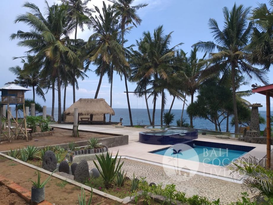 A single level property nestled in a peaceful beachfront area of Karangasem is available for sale. Sprawled on a generous 9340 sqm of land allotment. These total of 4 bungalows, each bungalow features en-suite bedroom, work desk, terrace, kitchen (total of 2), manicured lawns with lush tropical garden and parking space.