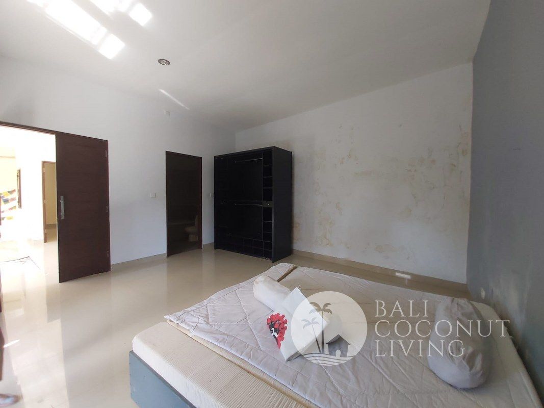 An unfurnished 2 bedroom Villa located in a residential area of Kerobokan is available for sale. Built on a 130 sqm of land size. The property consists of 2 bedrooms with an en-suite bedroom, kitchen, balcony, open living, poo, and parking area.
