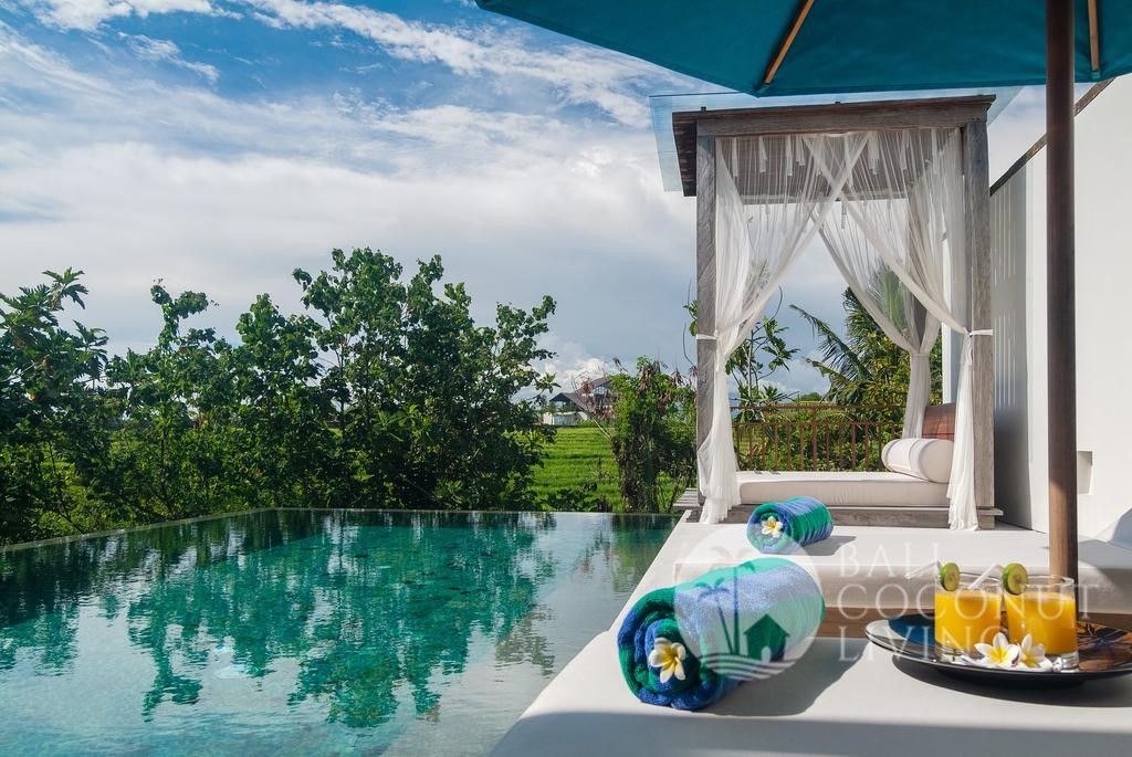 This elegant modern villa offers the perfect balance between tropical vibes and contemporary comfort. Designed with a closed living area, it ensures privacy and comfort while keeping the space bright and airy through wide glass doors overlooking the pool. Featuring 3 spacious bedrooms with ensuite bathrooms, a kitchen with warm wooden finishes, and a stylish living room that creates a cozy and