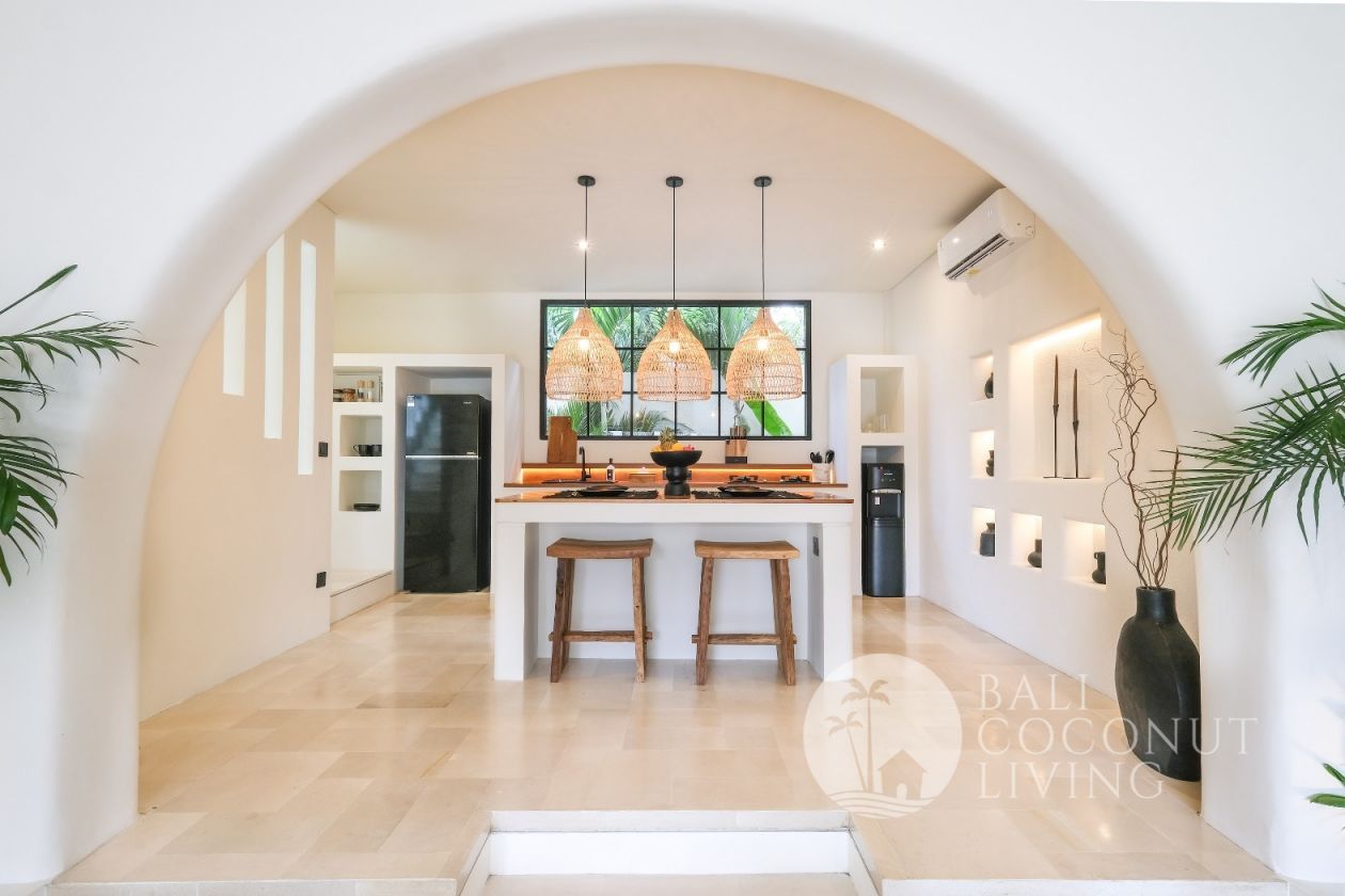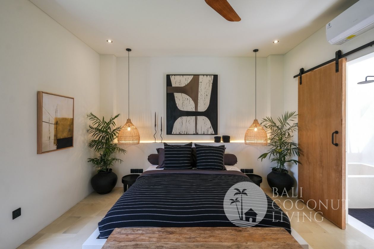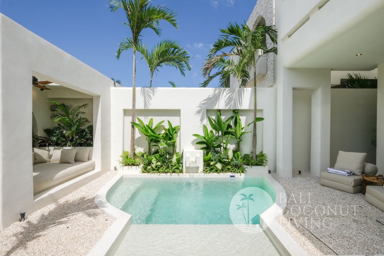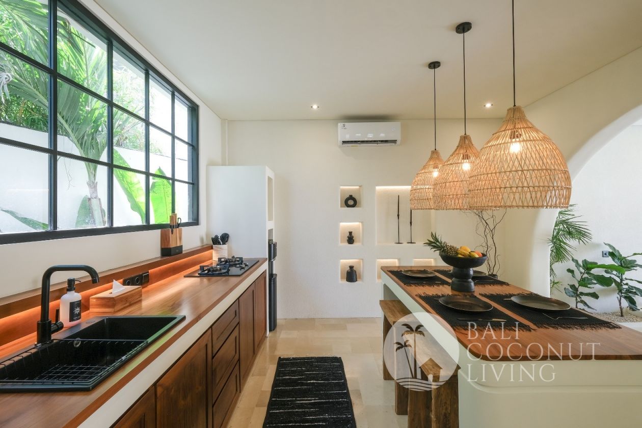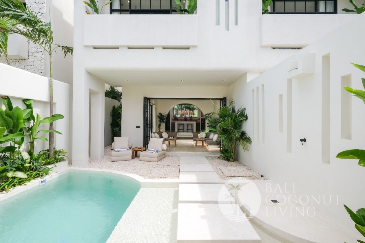 This elegant modern villa offers the perfect balance between tropical vibes and contemporary comfort. Designed with a closed living area, it ensures privacy and comfort while keeping the space bright and airy through wide glass doors overlooking the pool. Featuring 3 spacious bedrooms with ensuite bathrooms, a kitchen with warm wooden finishes, and a stylish living room that creates a cozy and