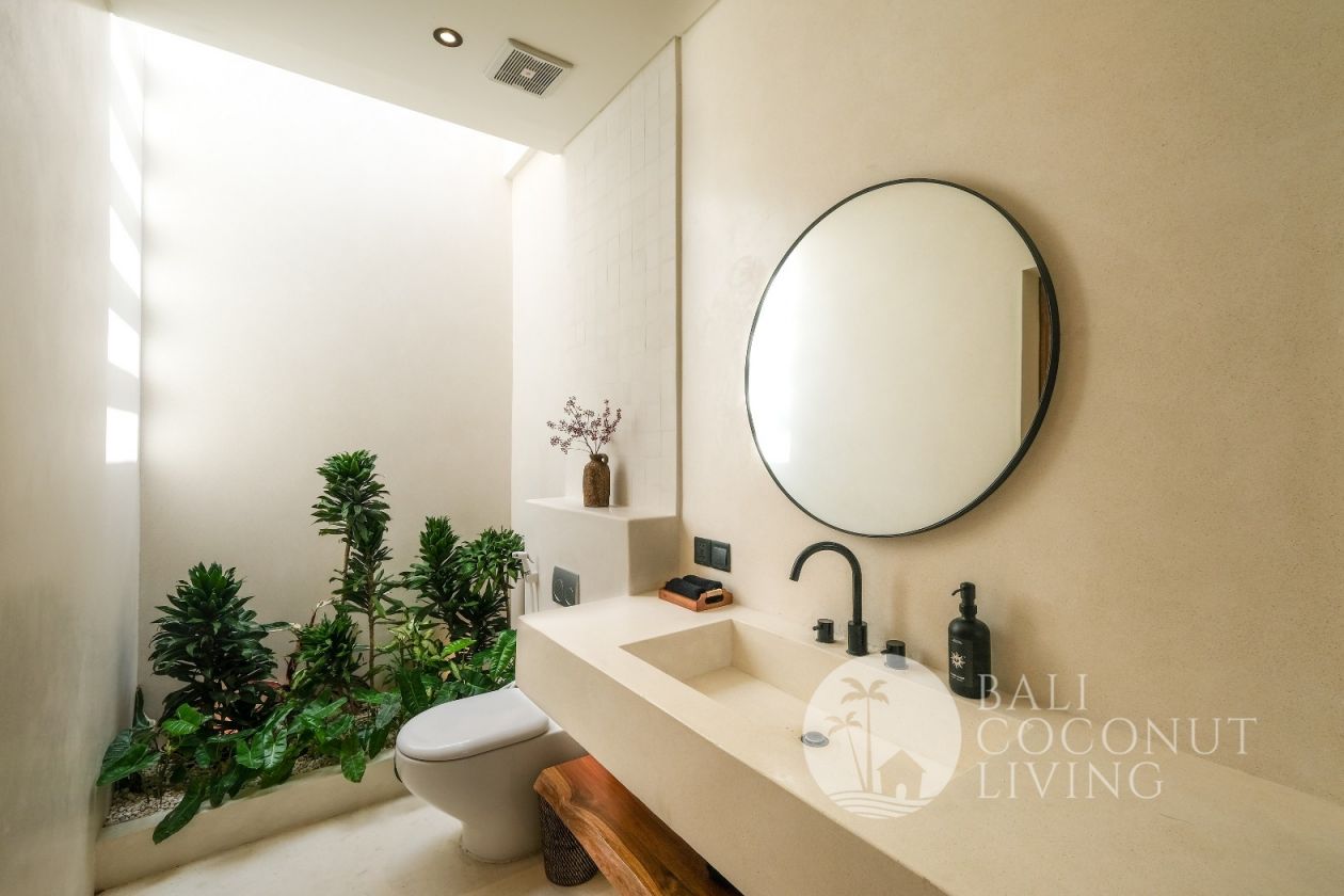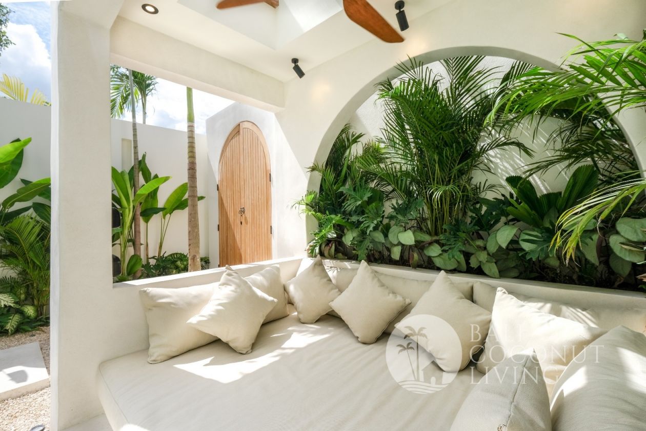 Villa Marcia 3 is a beautifully designed freehold villa located in the desirable area of Pererenan, offering a harmonious blend of modern elegance and tropical charm. Set on 153 sqm of land with a 115 sqm building size, this villa features 2 spacious bedrooms and 2 well-appointed bathrooms. The closed living area is thoughtfully designed with high ceilings, natural tones, and large glass windows that invite abundant natural light while maintaining privacy. The living space seamlessly connects to a stylish kitchen and dining area, highlighted by tasteful architectural details and warm wooden accents. Outside, a private swimming pool and cozy sun-lounging area are surrounded by lush greenery, creating a tranquil retreat. Ideal as a private residence or investment property, Villa Marcia 3 offers comfort, style, and a prime freehold opportunity in Pererenan.