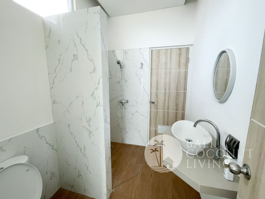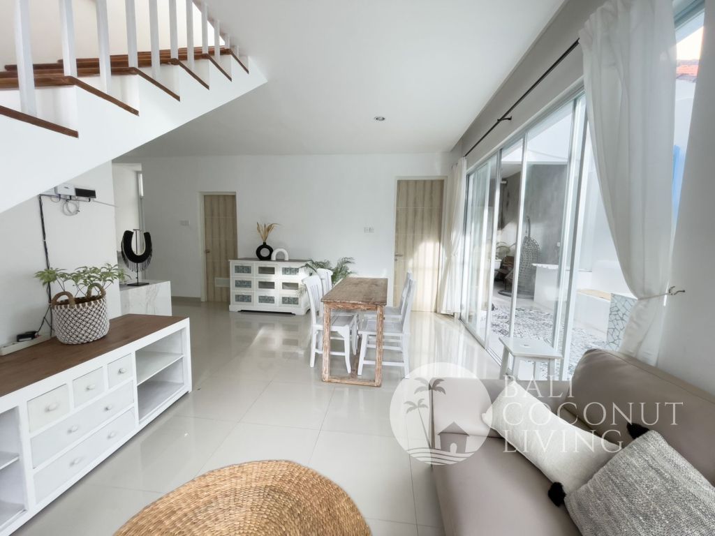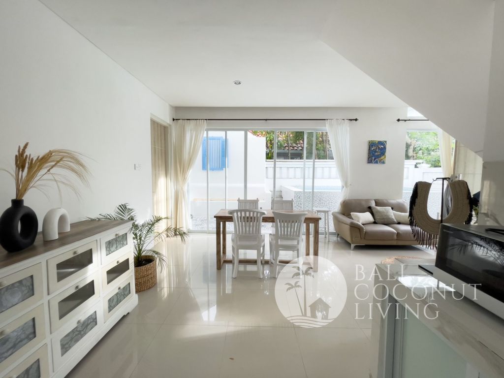 This elegant modern villa offers the perfect balance between tropical vibes and contemporary comfort. Designed with a closed living area, it ensures privacy and comfort while keeping the space bright and airy through wide glass doors overlooking the pool. Featuring 3 spacious bedrooms with ensuite bathrooms, a kitchen with warm wooden finishes, and a stylish living room that creates a cozy and