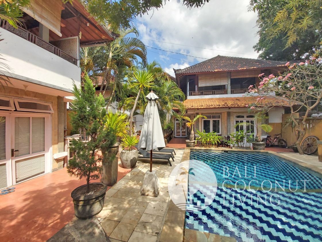 A complex of 3 units villa situated on a whopping 620 sqm land allotment in the picture-perfect of Seminyak. The property consists of a total of 8 bedrooms with en-suite bathrooms, closed living, kitchen, terrace, pool and parking space.