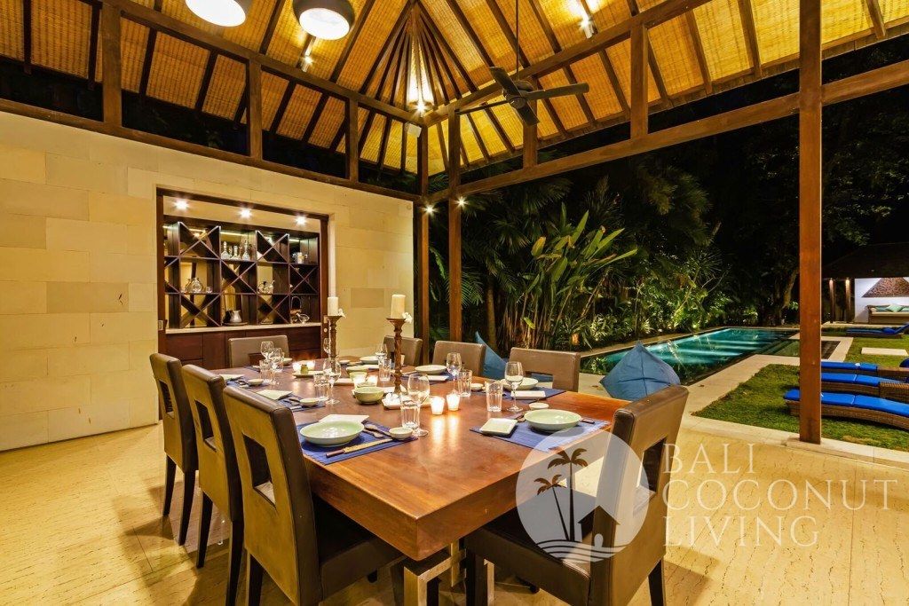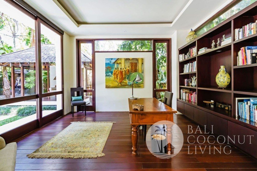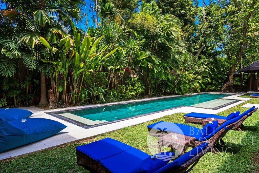 A luxury 5-bedroom villa situated in a heart of the Seminyak district is available for monthly rental. Extremely well presented, boasting 5 bedrooms with en-suite bathroom, enclosed living, a study room, a cinema room, a gazebo (outdoor lounge), an open dining room, a balcony, manicured lawn with tropical vegetation, a private pool, and a garage.