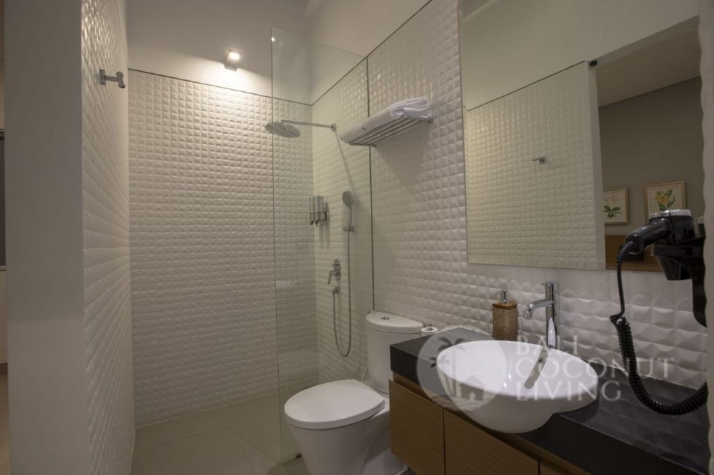 This stylish 3 bedroom, 3 bathroom villa in the heart of Berawa offers a perfect balance of comfort, functionality, and modern tropical living. Built on 200 sqm of land, the property features a well-designed layout with an enclosed living area, creating a cool and private indoor space ideal for both relaxation and everyday living. Large glass doors and windows allow natural light to flow in while
