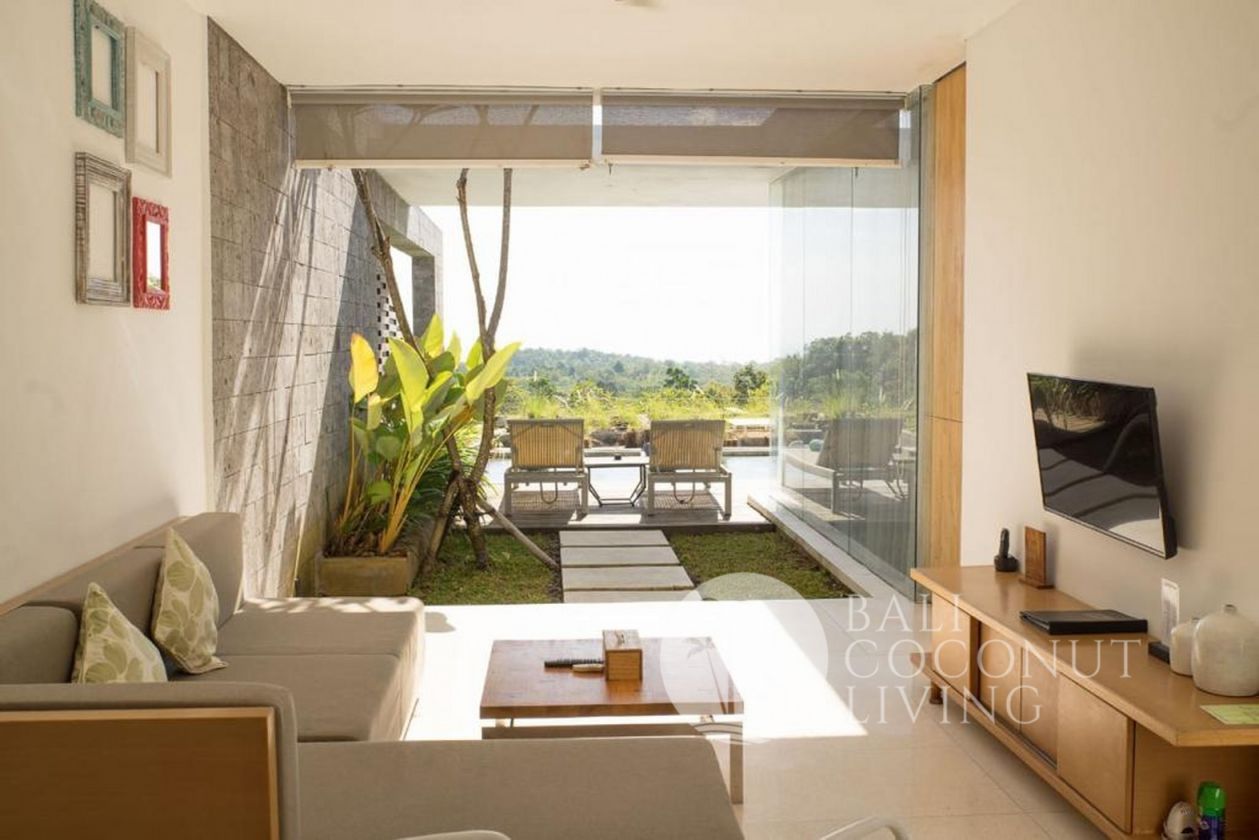 Presenting a desirable investment opportunity, this tidy property is located in a peaceful location of Uluwatu. Tucked away within the exclusive villa complex, and offering secluded privacy across a 126 sqm block with 93 sqm of living space. Consiststing of 1 bedroom with an en-suite bathroom, an open living space, equipped kitchenette, a garden, a pool with a jungle view, and a parking space.