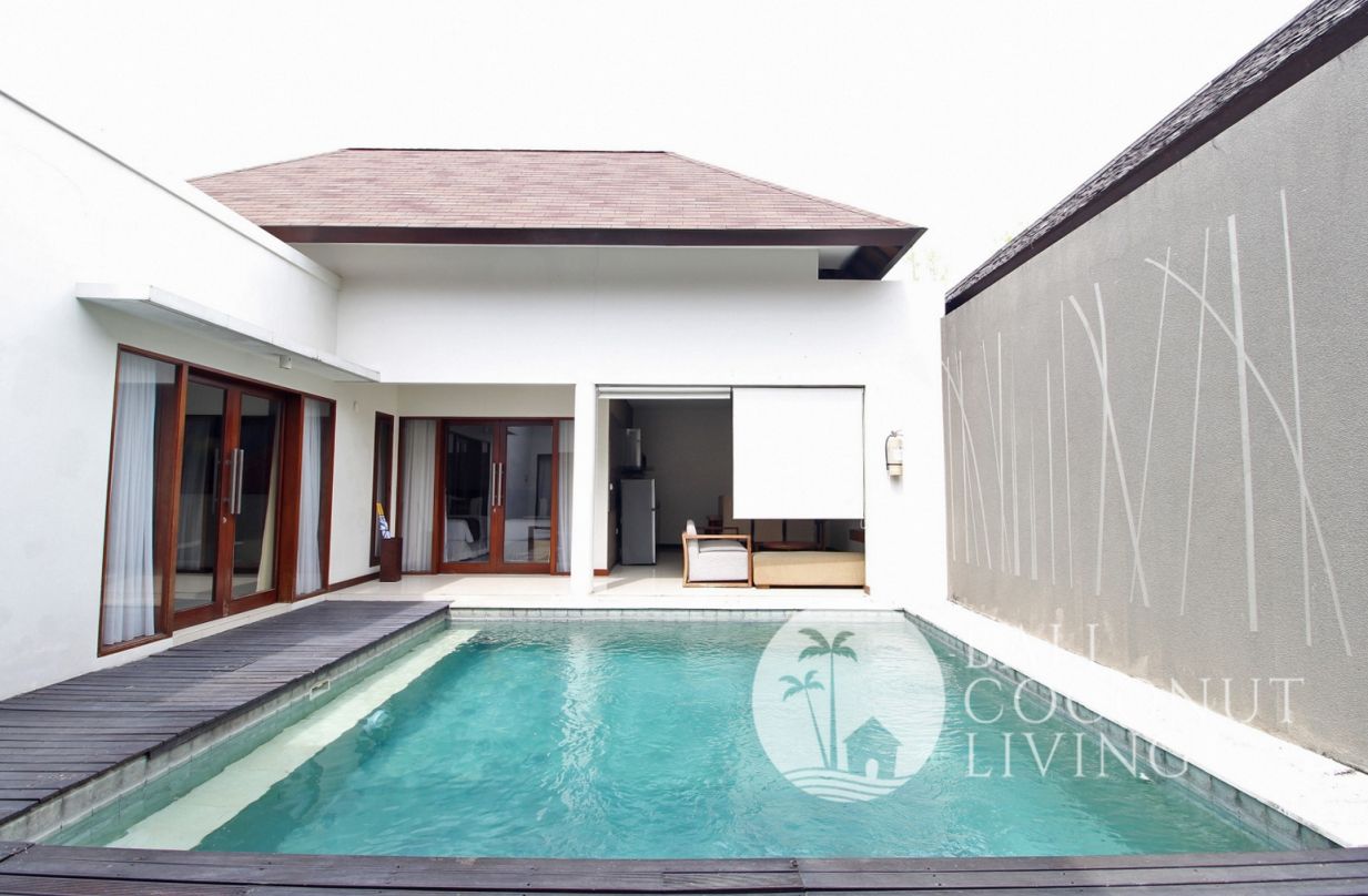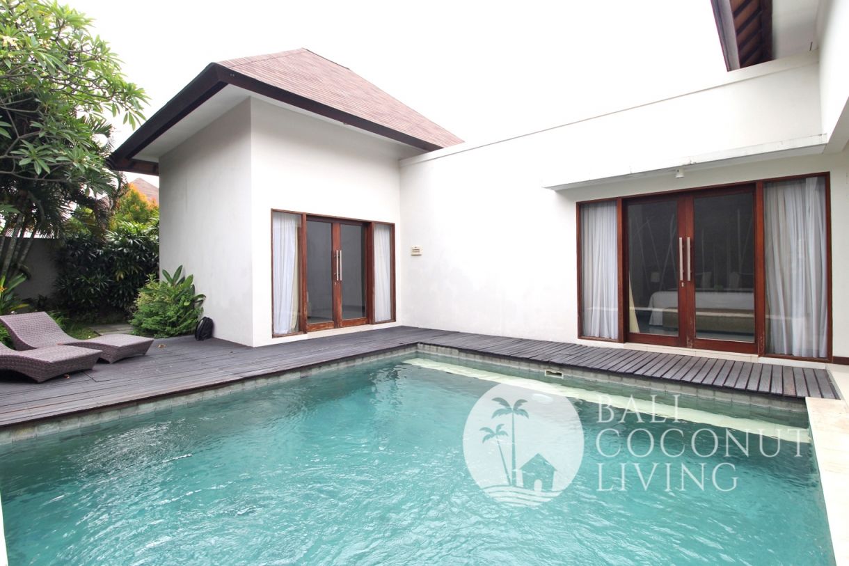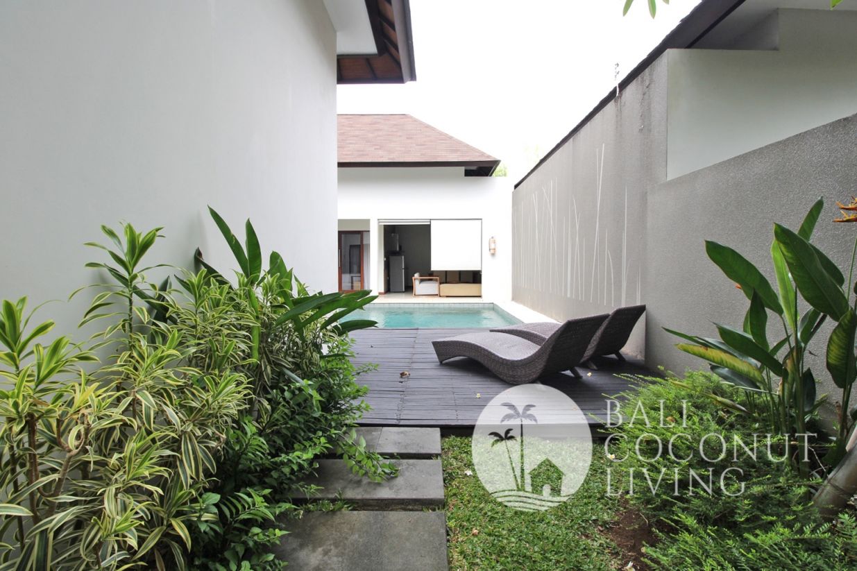 This stylish villa offers the perfect blend of comfort and modern living, located in the peaceful area of Tumbak Bayuh, just minutes away from the vibrant lifestyle of Canggu. Featuring 2 bedrooms with en-suite bathrooms, the villa is designed with a bright and airy layout, seamlessly connecting indoor and outdoor spaces. The enclosed living area opens directly to a private swimming pool with a