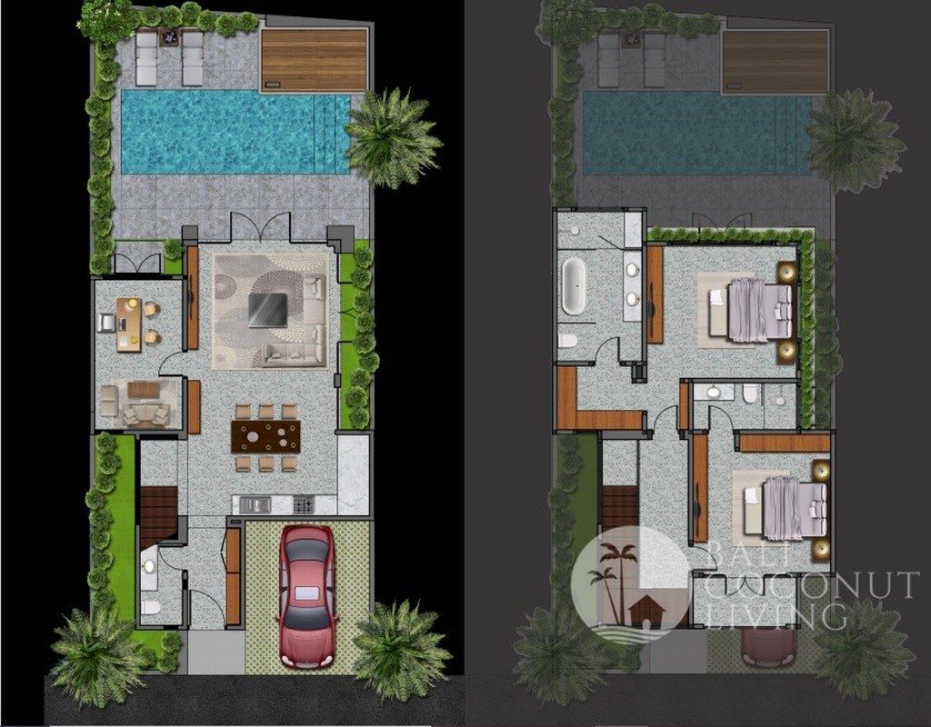 An amazing off the plan opportunity nestled in a lovely area of Berawa is available for sale. The property is set on 155 sqm of land allotment with 143 sqm of building. The property features 2 bedrooms with an en-suite bathroom, an office or guest bedroom, a guest toilet, poolside bale (outdoor lounge), swimming pool, and parking space (indoor garage).
