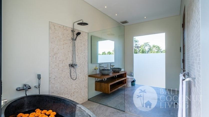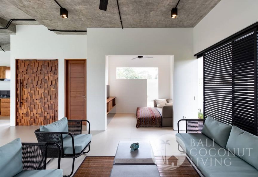 This elegant modern villa offers the perfect balance between tropical vibes and contemporary comfort. Designed with a closed living area, it ensures privacy and comfort while keeping the space bright and airy through wide glass doors overlooking the pool. Featuring 3 spacious bedrooms with ensuite bathrooms, a kitchen with warm wooden finishes, and a stylish living room that creates a cozy and