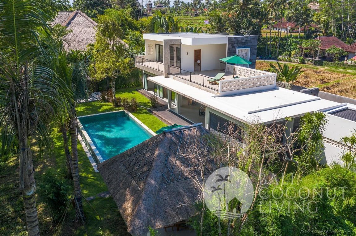A stylish 3 bedroom property nestled in a peaceful location of Ubud is available for sale. Architecturally designed with a strong focus on indoor & outdoor entertaining, this custom-built home spans 800 sqm of land allotment with 350 sqm of internal space and offers an abundance of accommodation. Boasting 3 bedrooms with en-suite bathrooms, cinema room or family room, a guest toilet, open living and dining room, pergola with outdoor dining space, outdoor seating area, spa area, balcony and rooftop terrace, yoga shala, pool, garden, and garage (parking space).