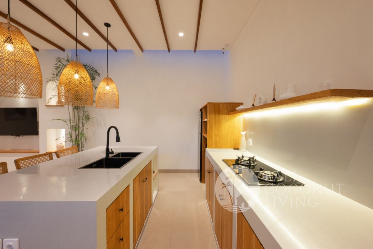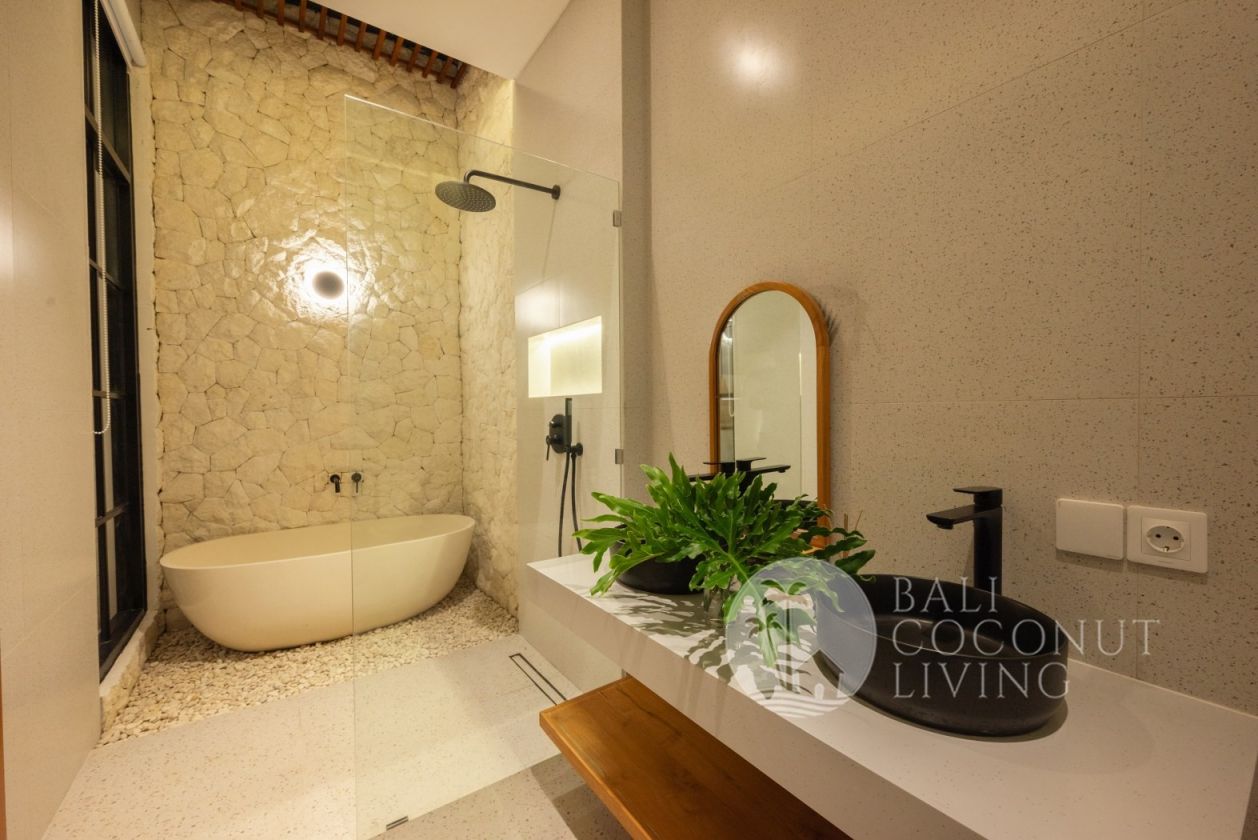 This stunning 2-bedrooms cozy villa is located in the beautiful and peaceful village of Ubud - Gianyar. The property sits on a spacious 200 sqm of land and boasts a modern and stylish design with high-end finishes and fixtures throughout. The villa comprises 2 generously sized bedrooms, with 2 en-suite bathrooms. The en-closed living and dining area offers warmth and comfort. The fully equipped kitchen features top-of-the-line appliances and plenty of storage space.