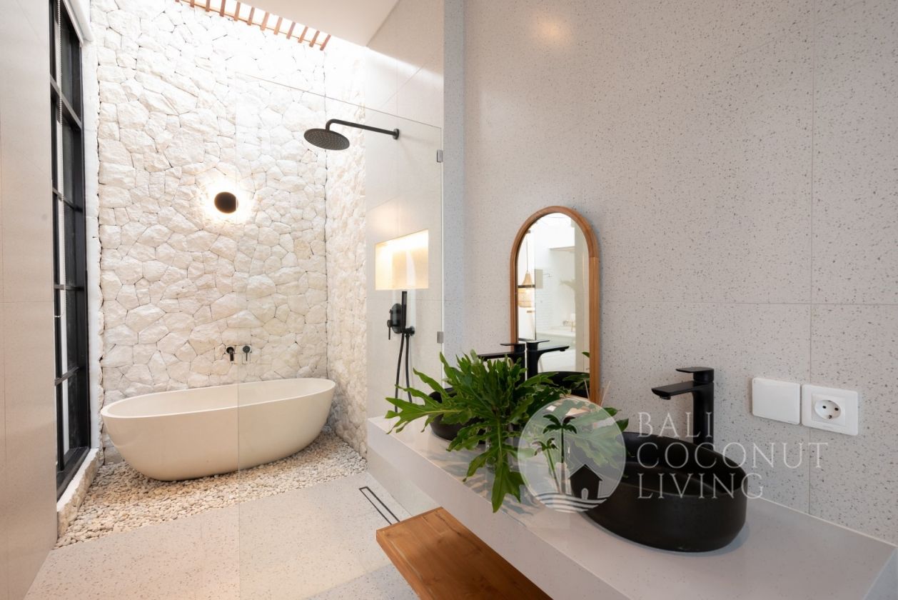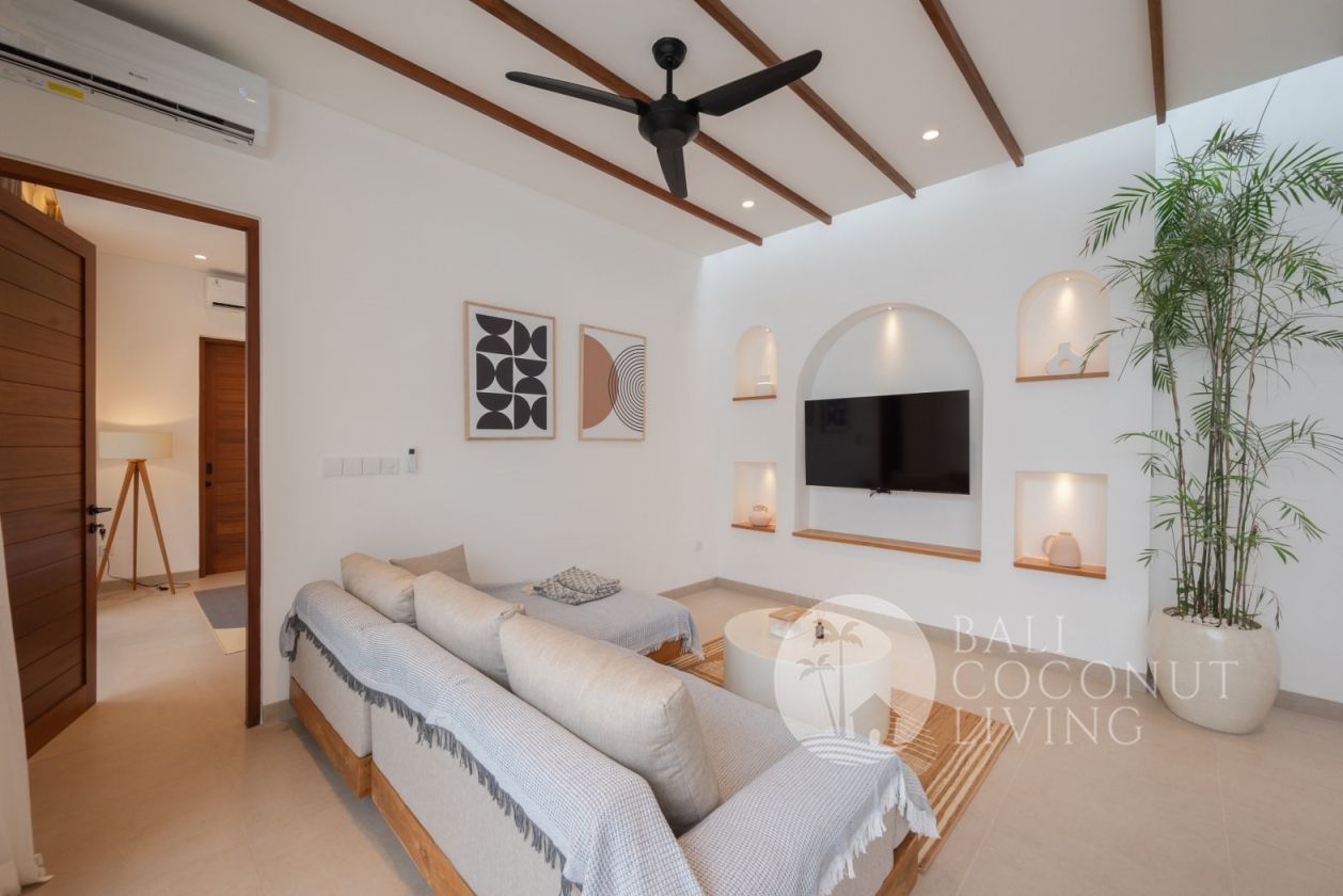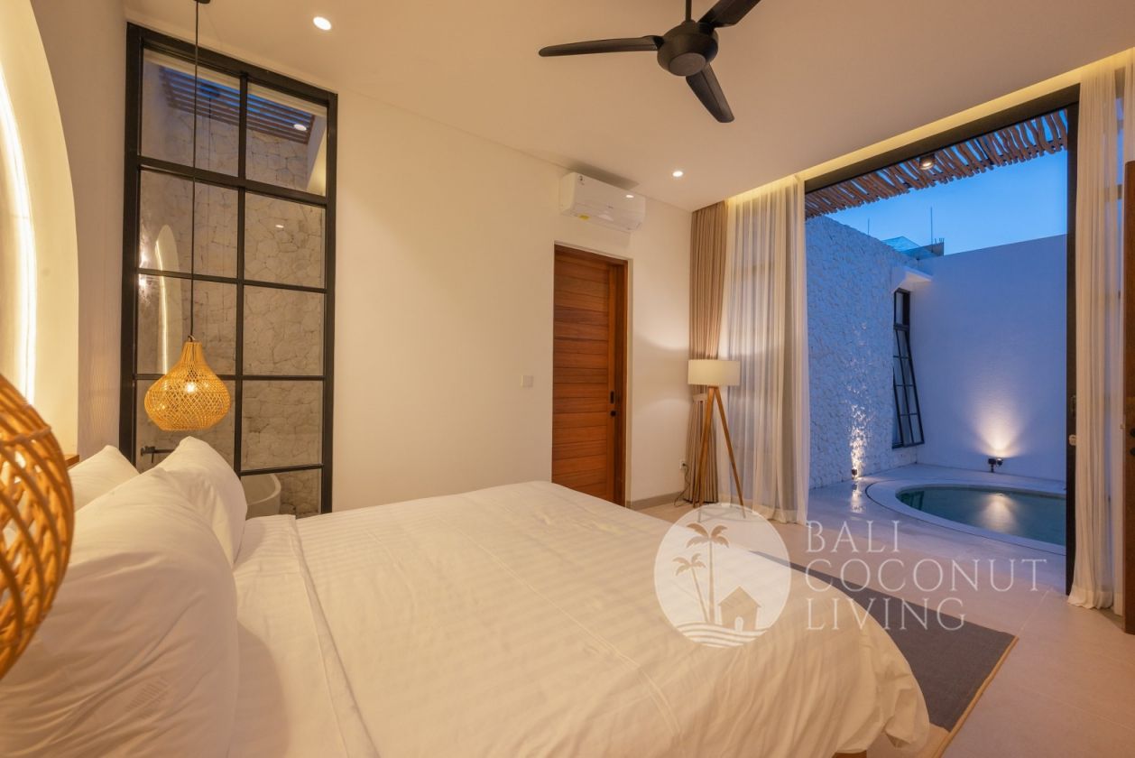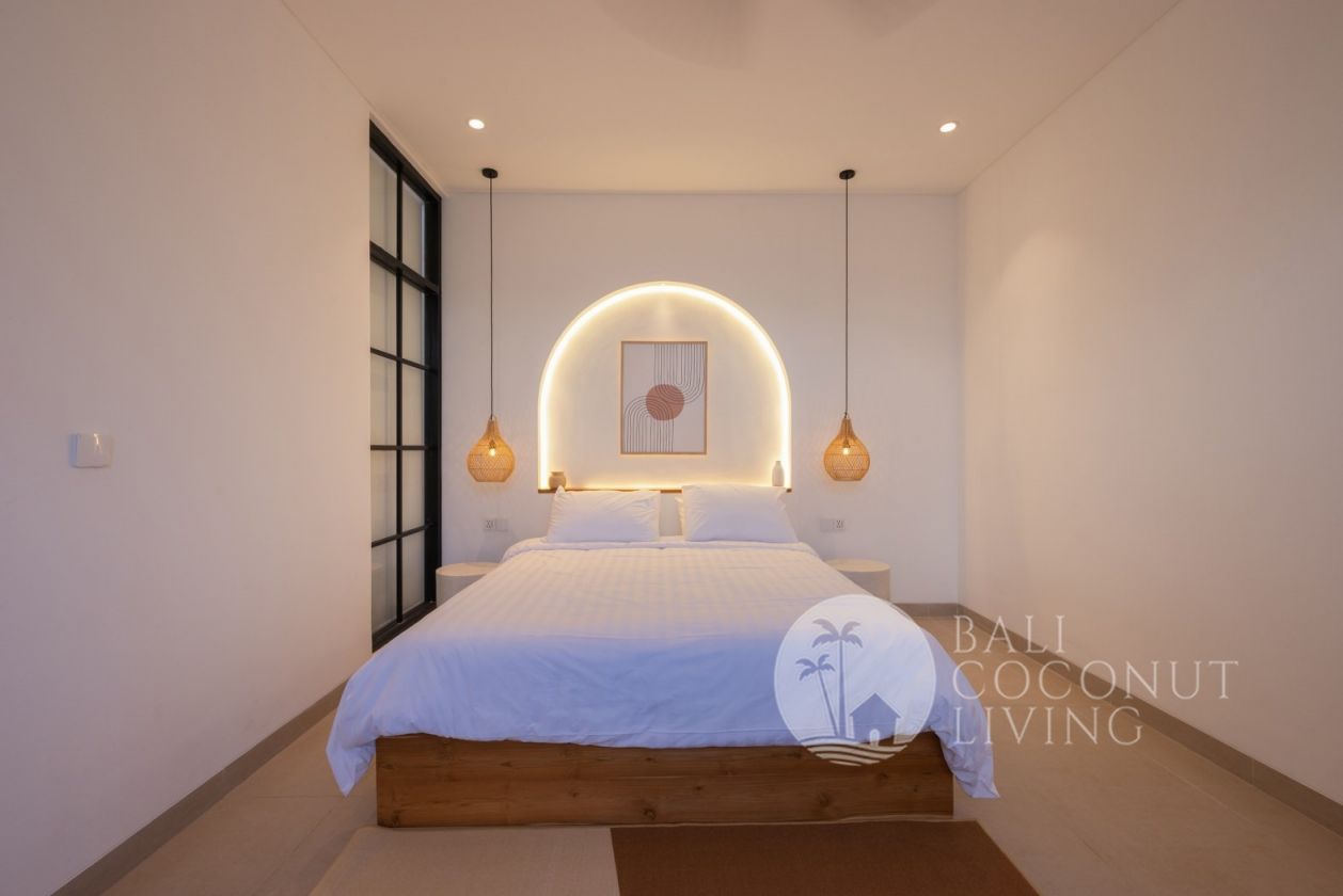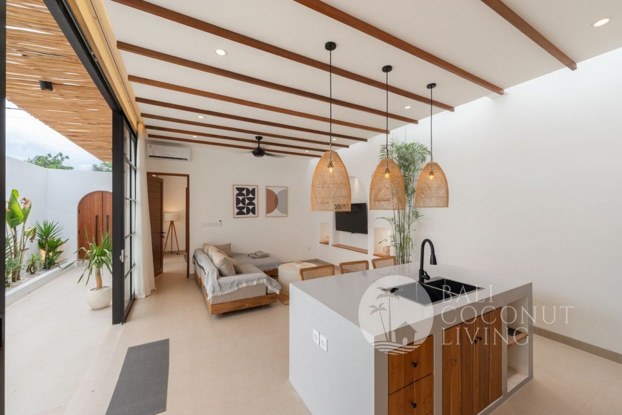 This stylish villa offers the perfect blend of comfort and modern living, located in the peaceful area of Tumbak Bayuh, just minutes away from the vibrant lifestyle of Canggu. Featuring 2 bedrooms with en-suite bathrooms, the villa is designed with a bright and airy layout, seamlessly connecting indoor and outdoor spaces. The enclosed living area opens directly to a private swimming pool with a