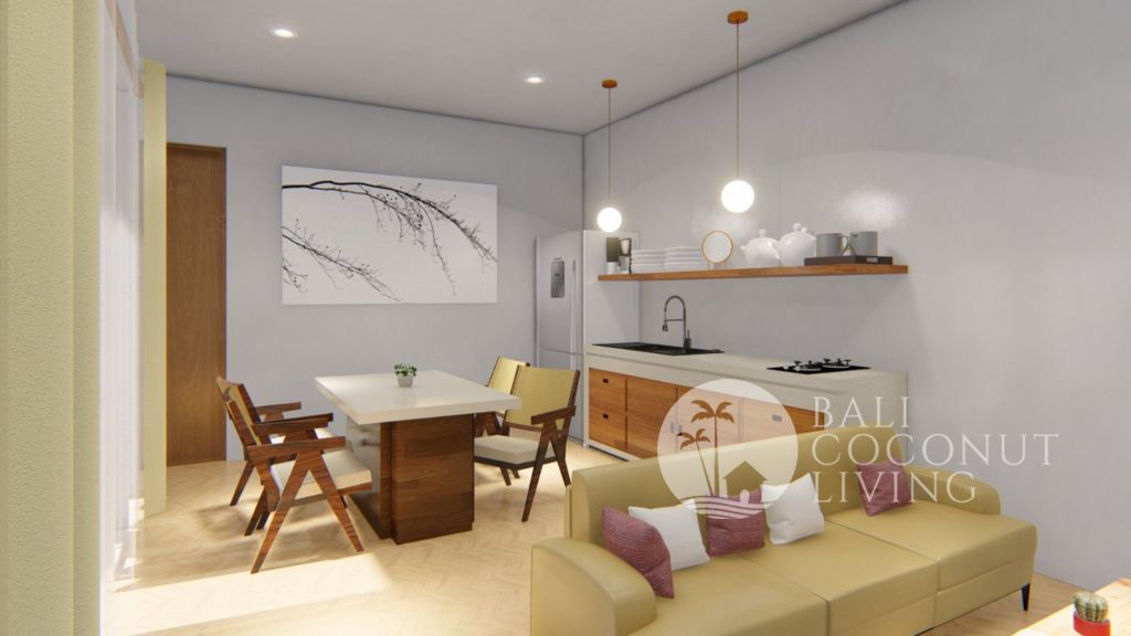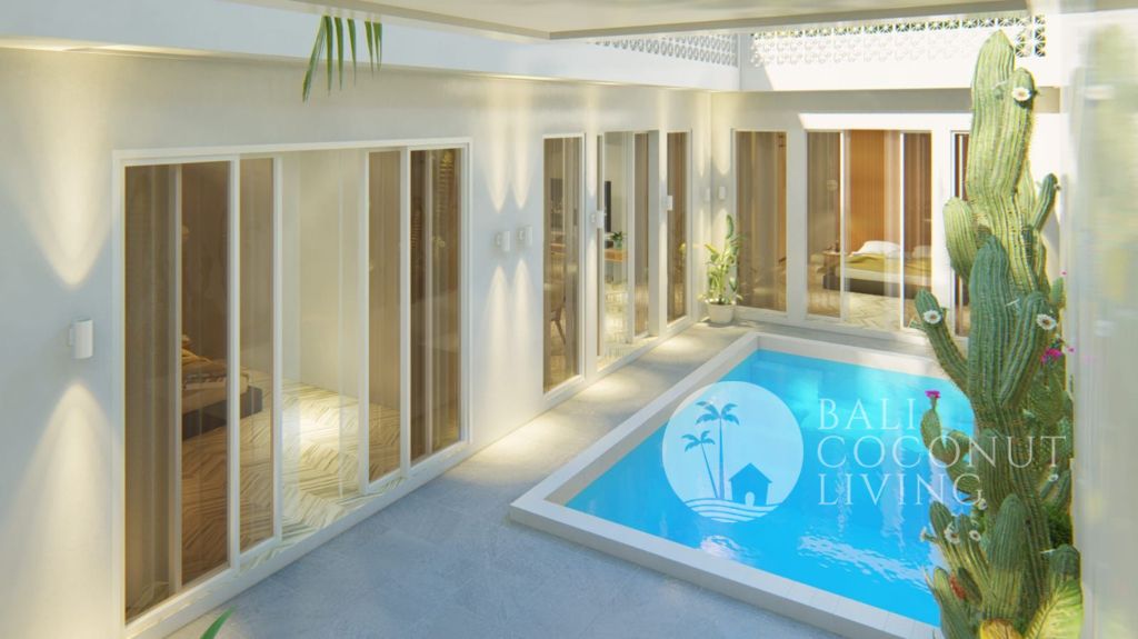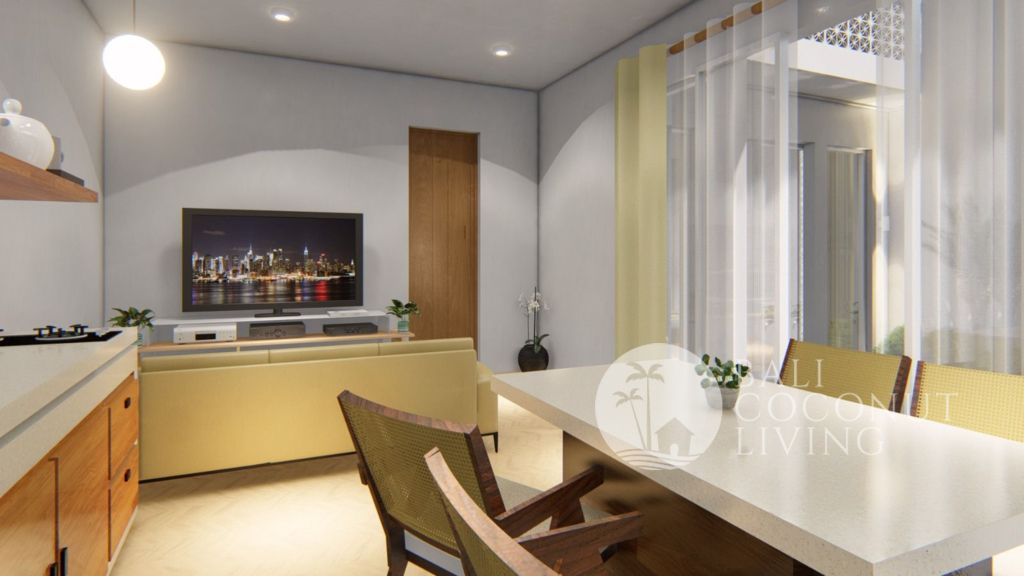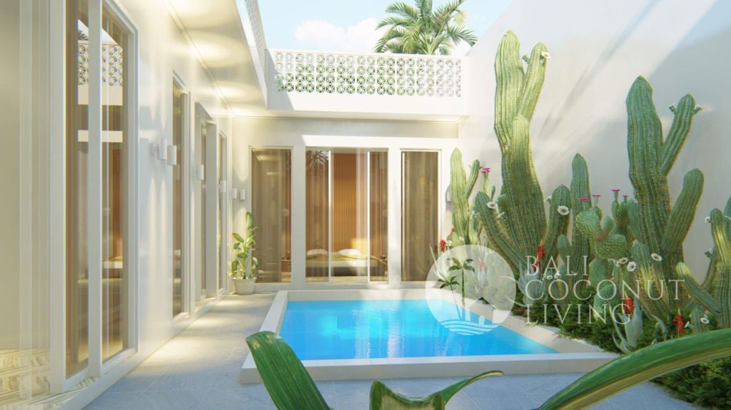 This cozy 2 bedroom villa in Berawa offers a perfect blend of modern design and comfortable living. Set on 100 sqm of land, the property features a clean architectural style with warm wooden accents and large windows that invite plenty of natural light, creating a bright and welcoming atmosphere throughout the home. Inside, you’ll find a cozy enclosed living area that seamlessly connects to t