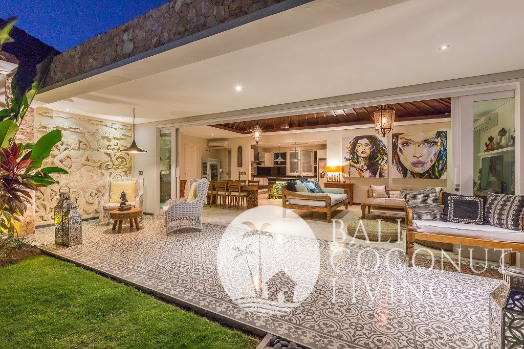 This elegant modern villa offers the perfect balance between tropical vibes and contemporary comfort. Designed with a closed living area, it ensures privacy and comfort while keeping the space bright and airy through wide glass doors overlooking the pool. Featuring 3 spacious bedrooms with ensuite bathrooms, a kitchen with warm wooden finishes, and a stylish living room that creates a cozy and