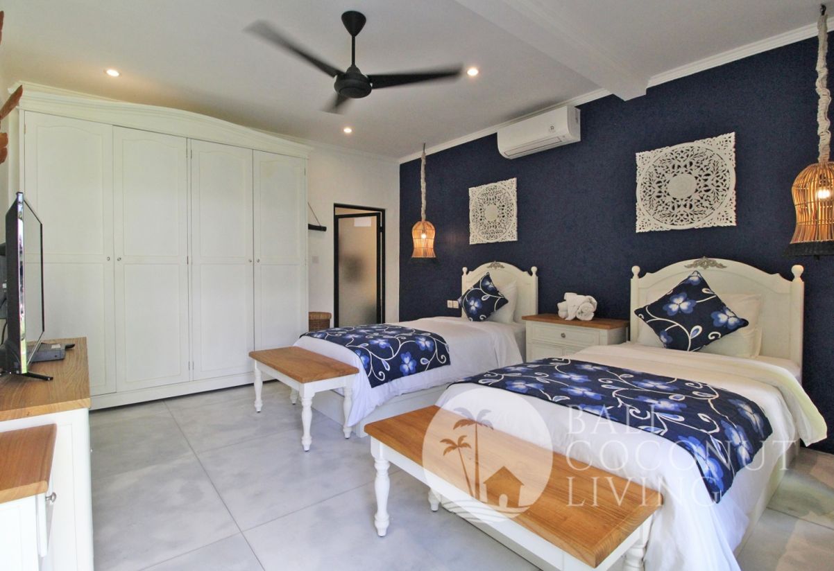 This elegant modern villa offers the perfect balance between tropical vibes and contemporary comfort. Designed with a closed living area, it ensures privacy and comfort while keeping the space bright and airy through wide glass doors overlooking the pool. Featuring 3 spacious bedrooms with ensuite bathrooms, a kitchen with warm wooden finishes, and a stylish living room that creates a cozy and