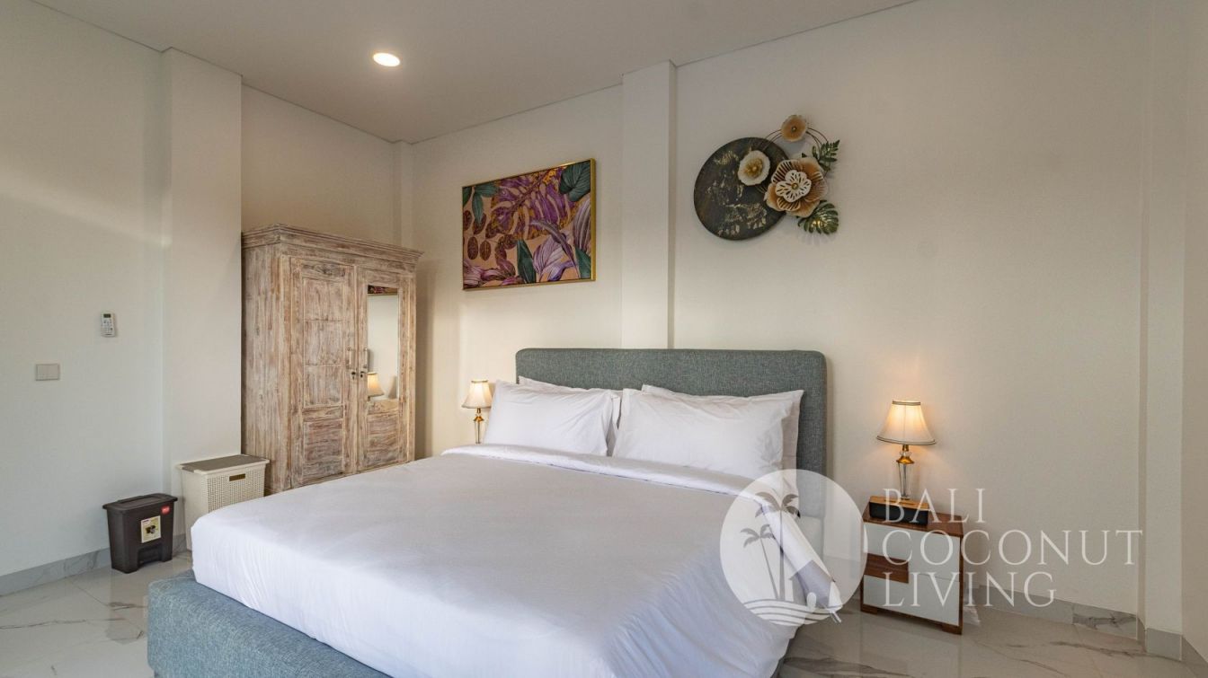 Villa Serasae is a beautifully designed modern minimalist villa located in the tranquil area of Munggu, Mengwi. Set on 200 sqm of land with a 160 sqm building size, this freehold property offers a perfect balance between contemporary architecture and warm, natural tones. The exterior showcases clean lines and a refined facade, while the interior highlights soft neutral colors, elegant textures, an