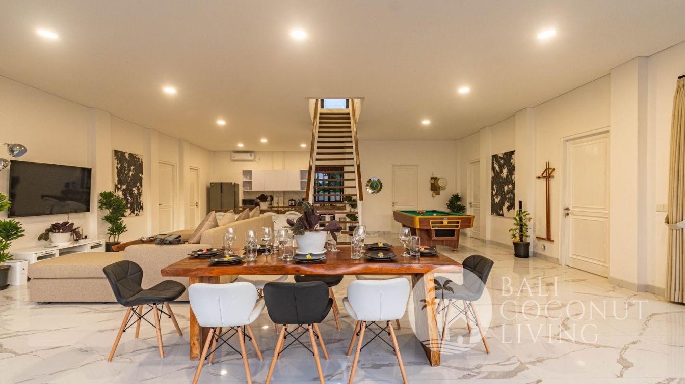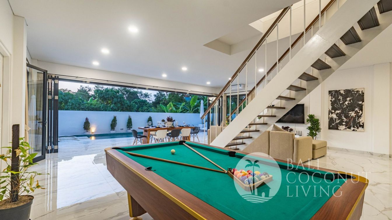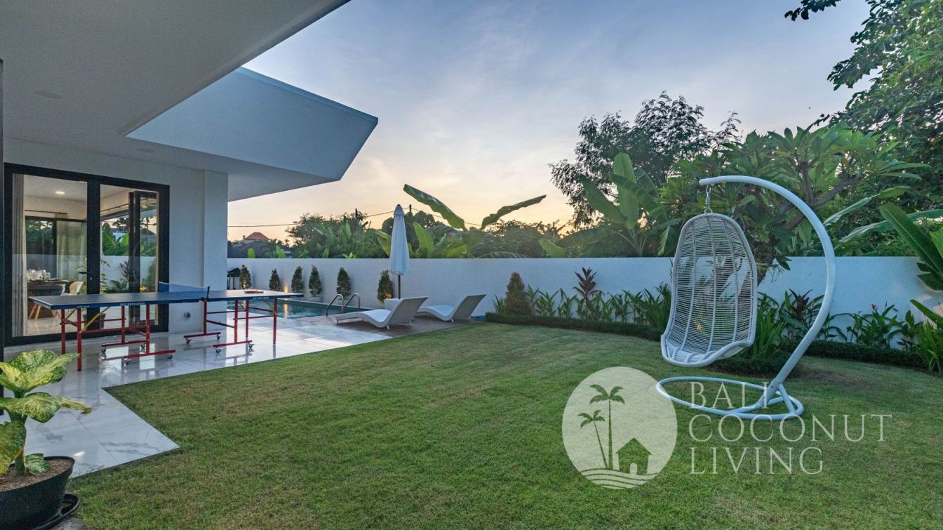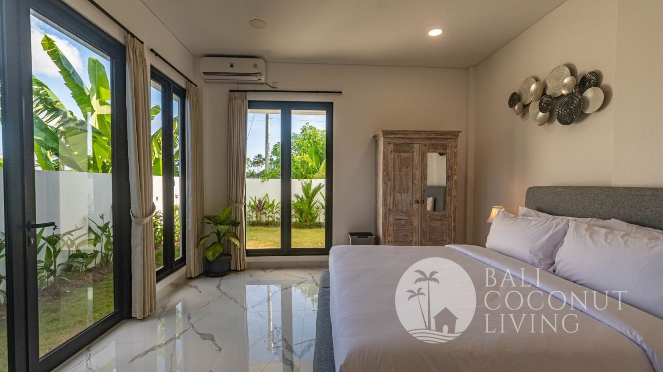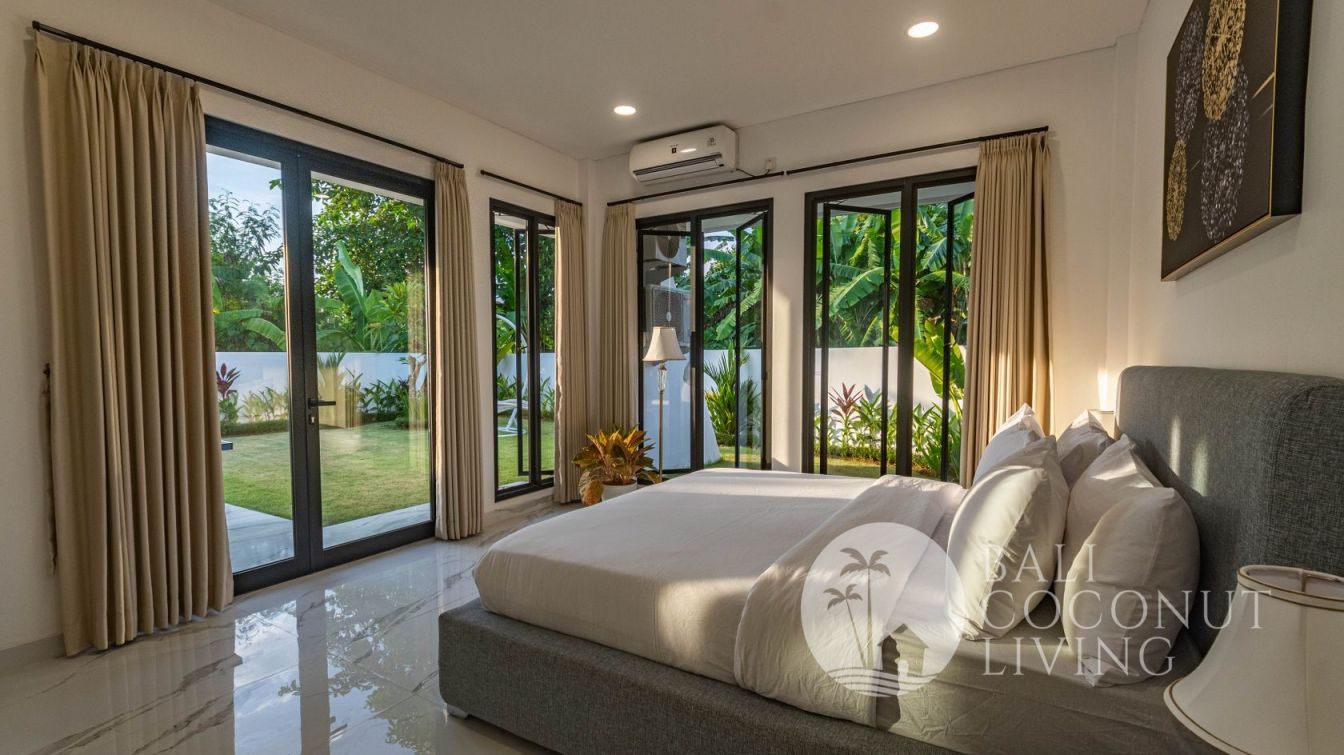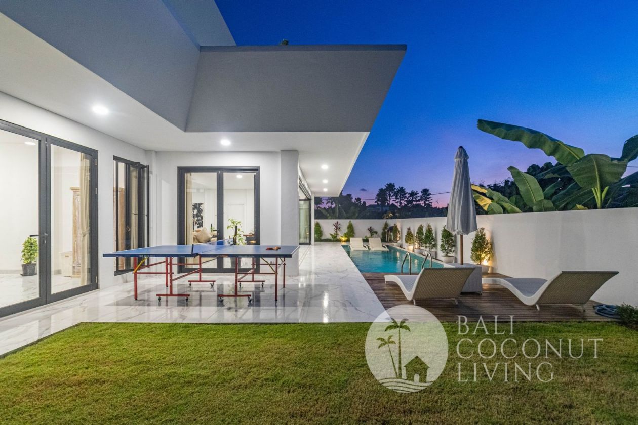 This elegant modern villa offers the perfect balance between tropical vibes and contemporary comfort. Designed with a closed living area, it ensures privacy and comfort while keeping the space bright and airy through wide glass doors overlooking the pool. Featuring 3 spacious bedrooms with ensuite bathrooms, a kitchen with warm wooden finishes, and a stylish living room that creates a cozy and
